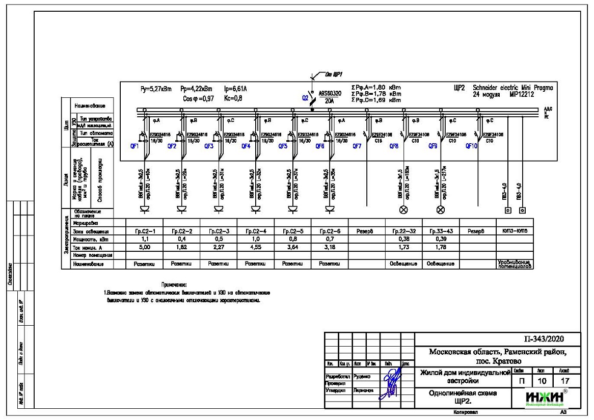 2. Однолинейные схемы вводного распределительного устройства и электрического распределительного щита дома 310 м.кв.