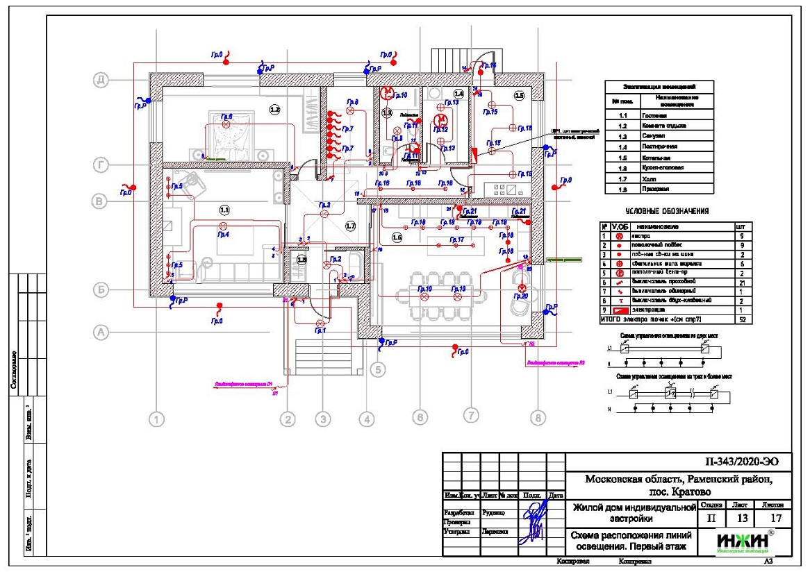 4. Чертежи групповых осветительных сетей дома в пос. Кратово.