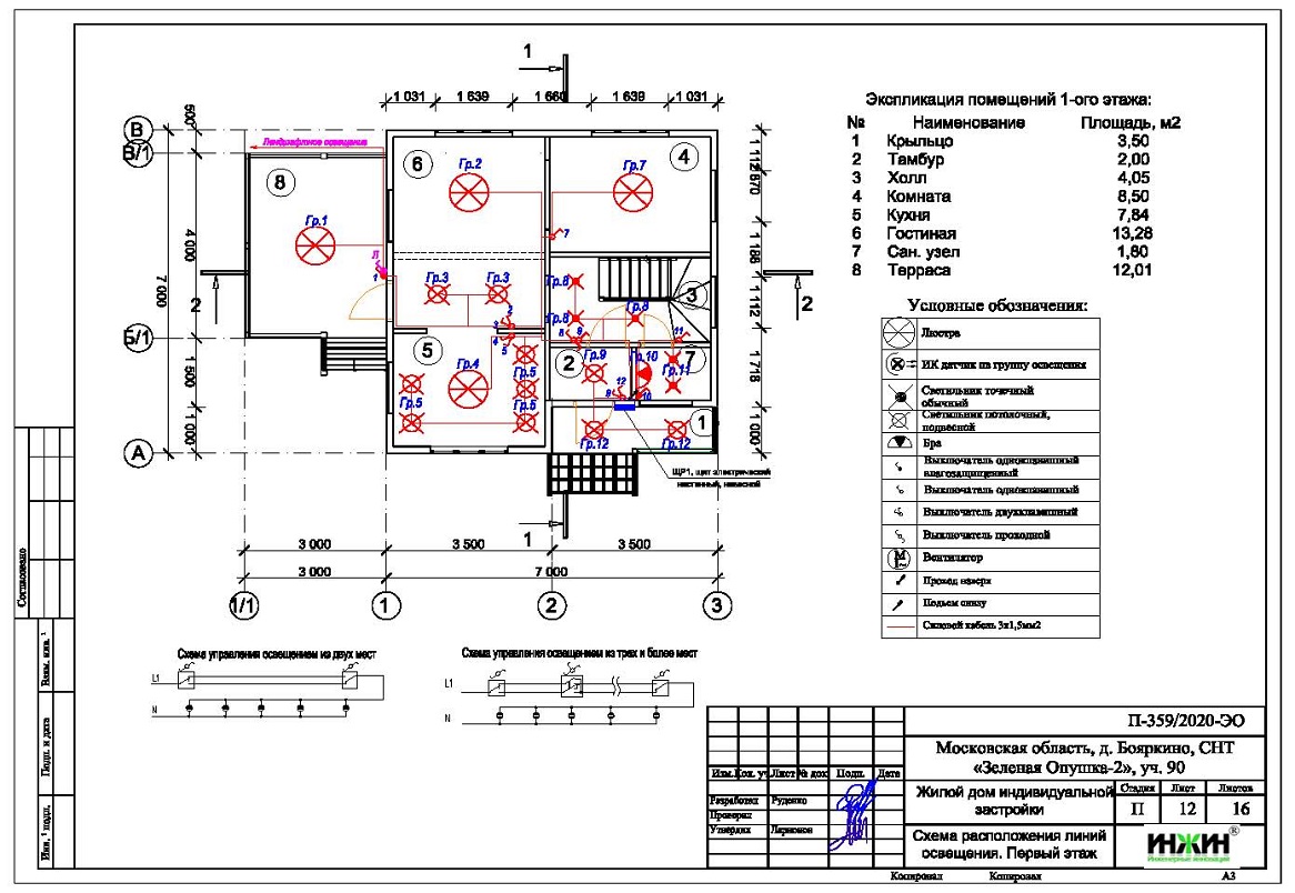 Объем проекта электрики дома 93 м.кв.: 16 листов.