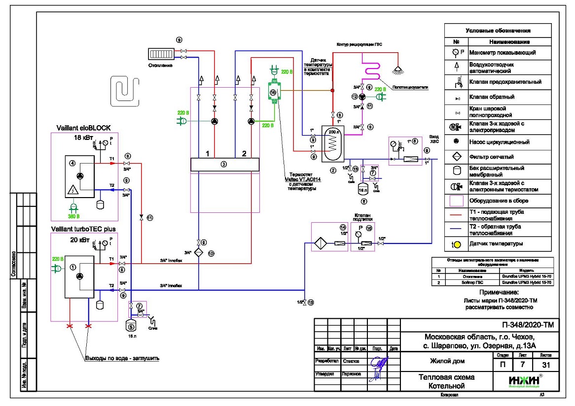 Объем проекта отопления и водоснабжения дома: 31 лист.