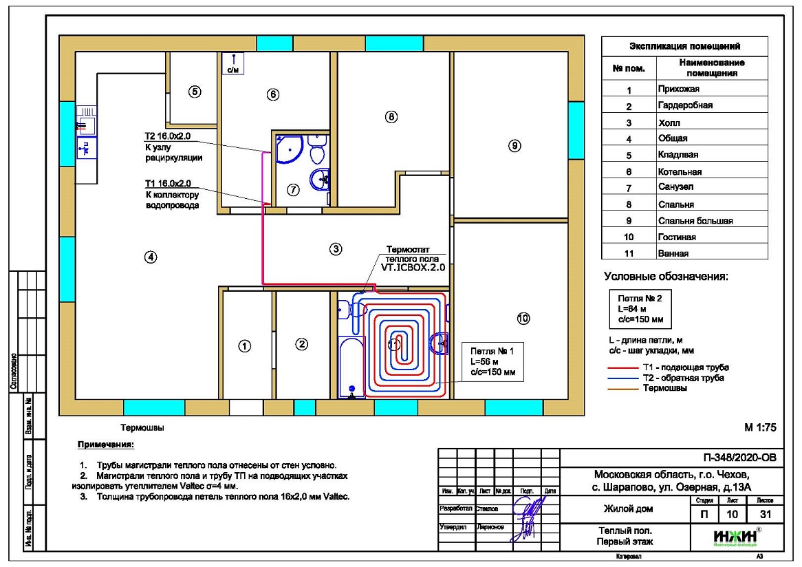 Водяной теплый пол дома в с. Шарапово (проект теплого пола).