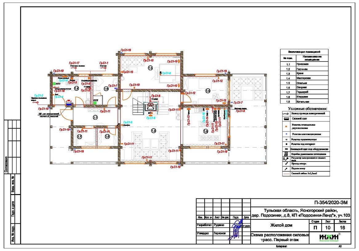3. Чертежи электропроводки дома в КП "Подосинки Ленд".