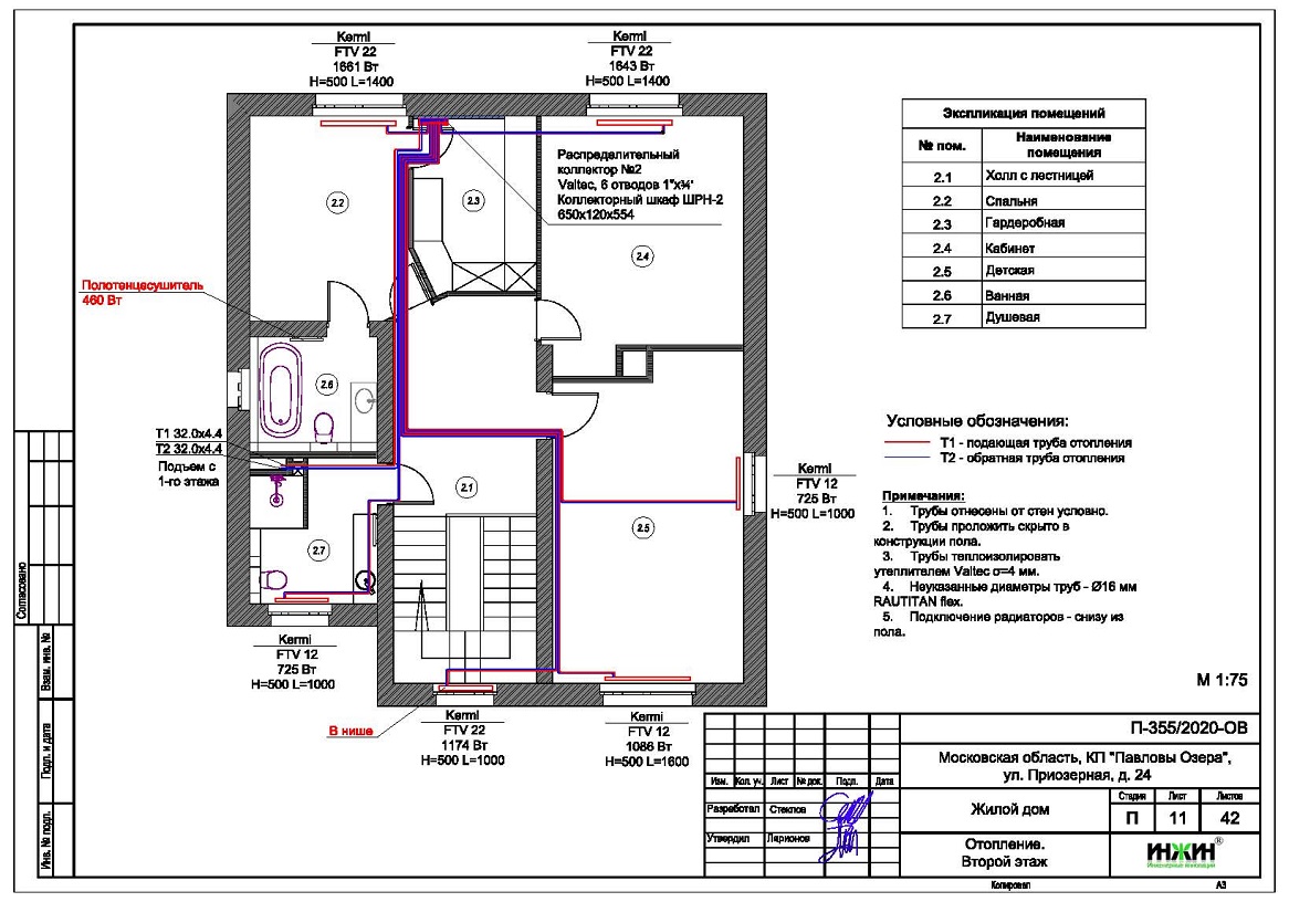 Отопление дома 231 м.кв. в КП "Павловы Озера", проект