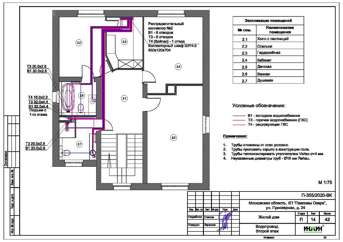 Внутренний водопровод дома в КП "Павловы Озера" (проект водоснабжения).