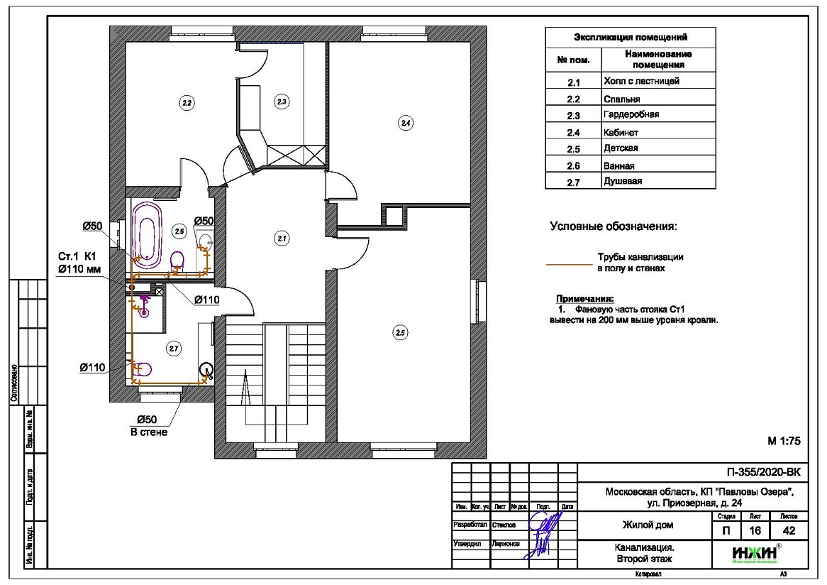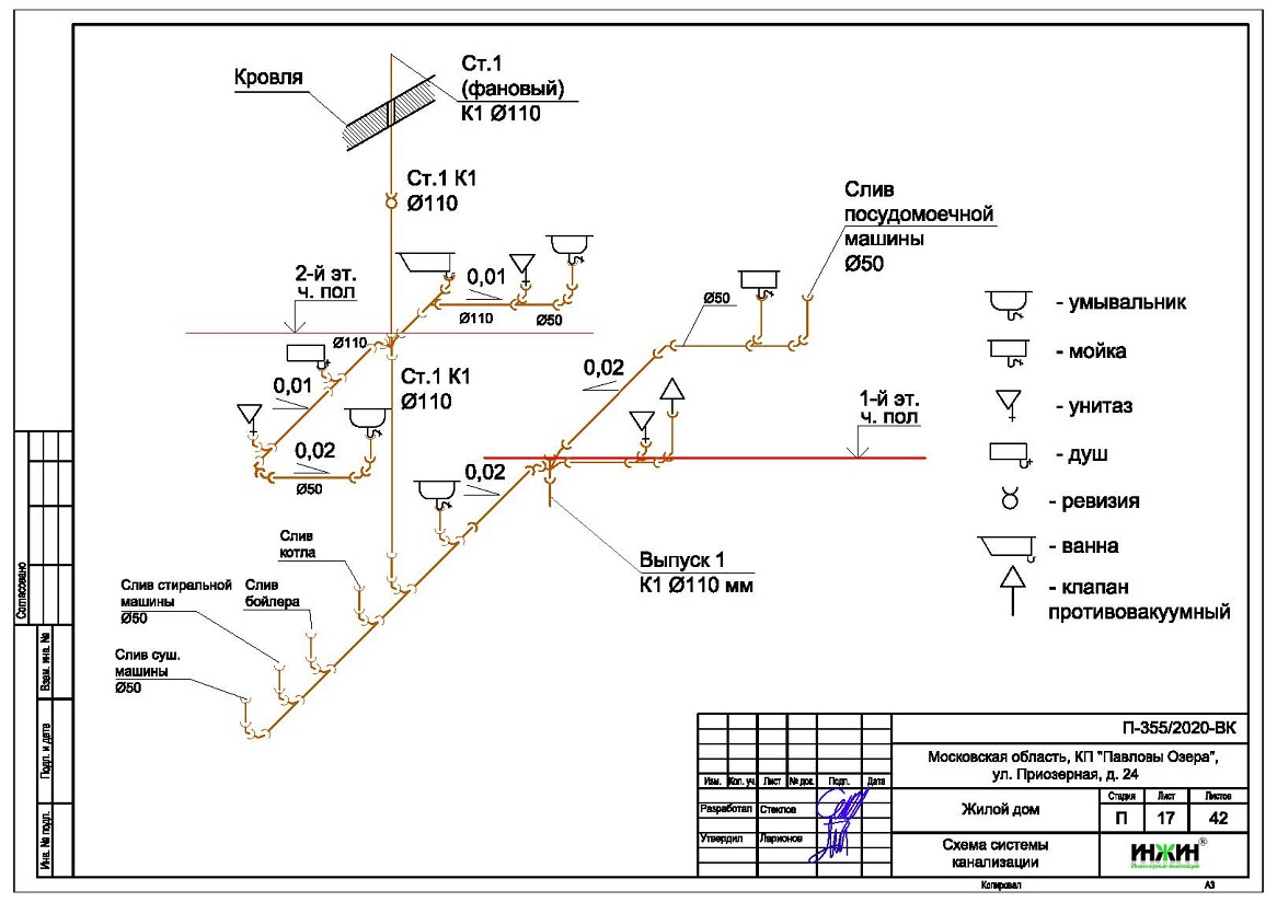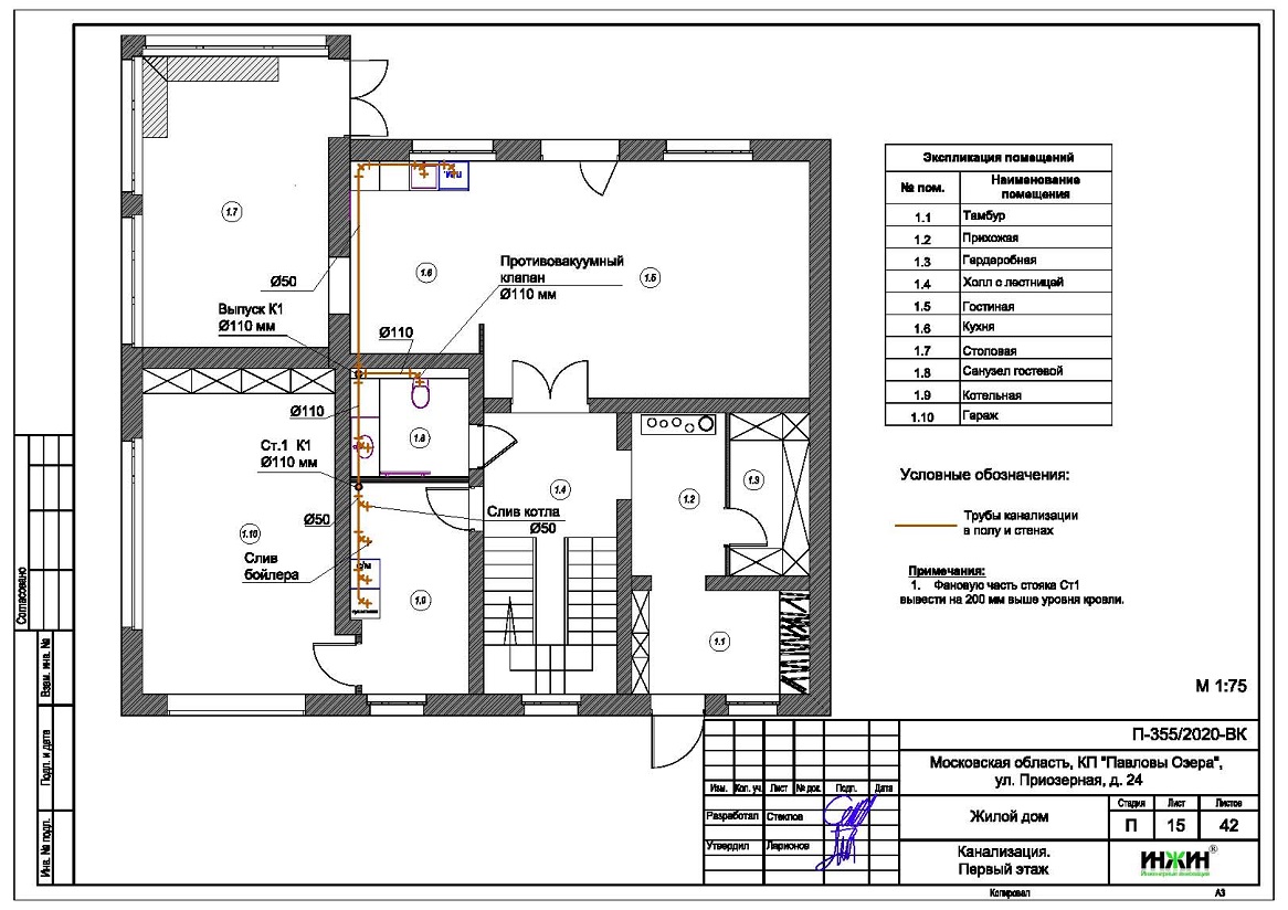 Внутренняя канализация (проект канализации) дома в КП "Павловы Озера".