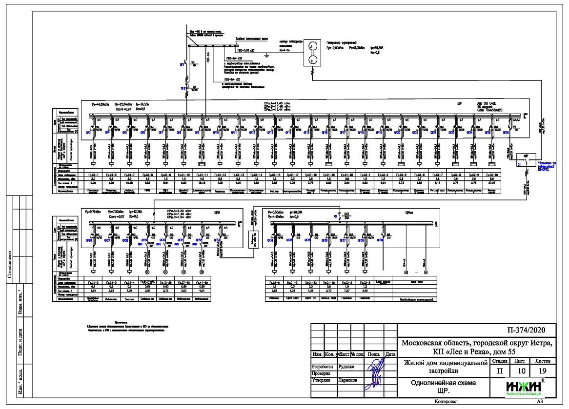 Проект электрики дома 356 м.кв. в КП «Лес и Река»