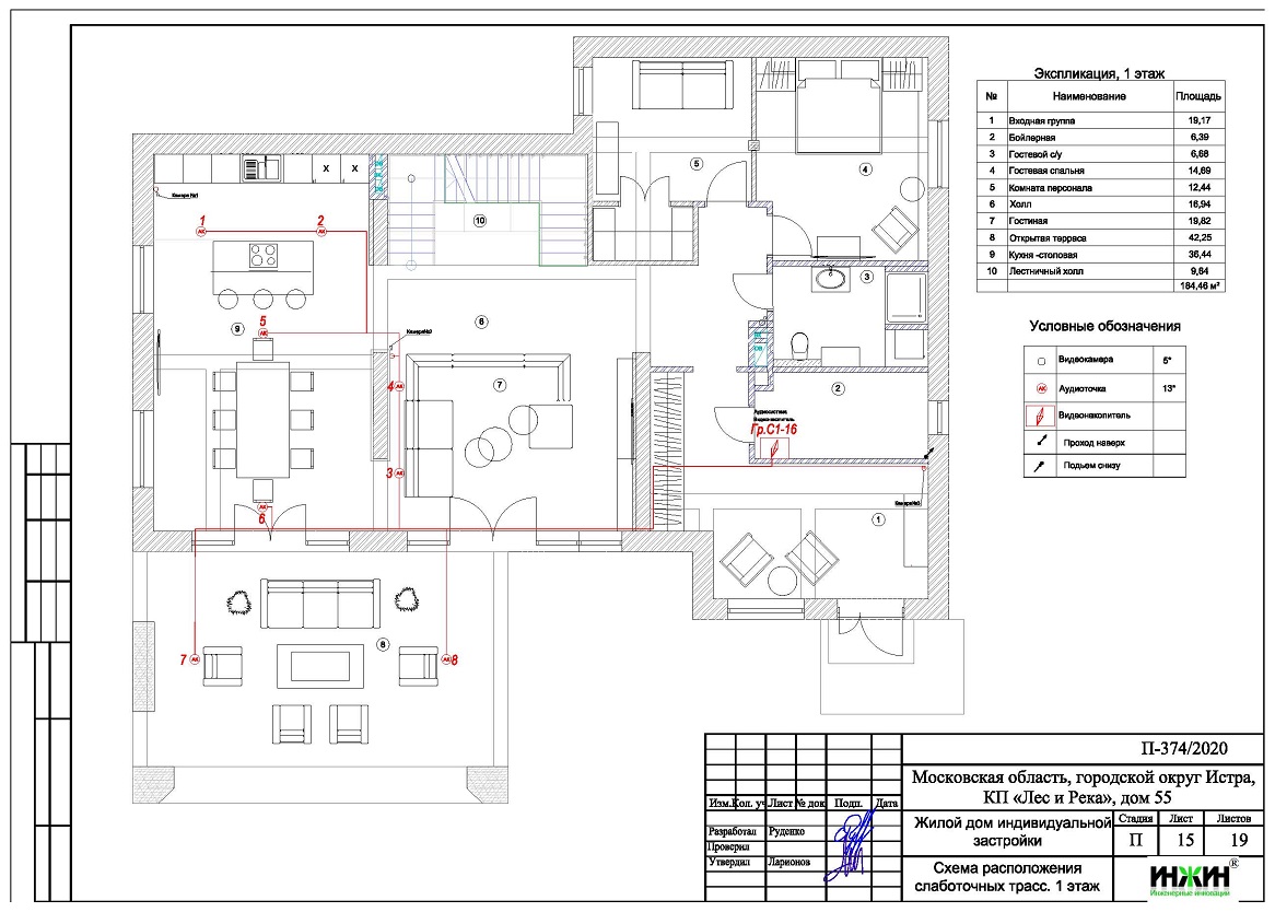 o Запроектировано 197 точек подключения розеток и выключателей освещения в доме;
