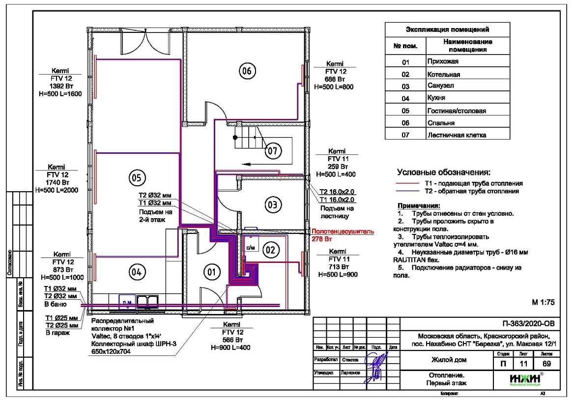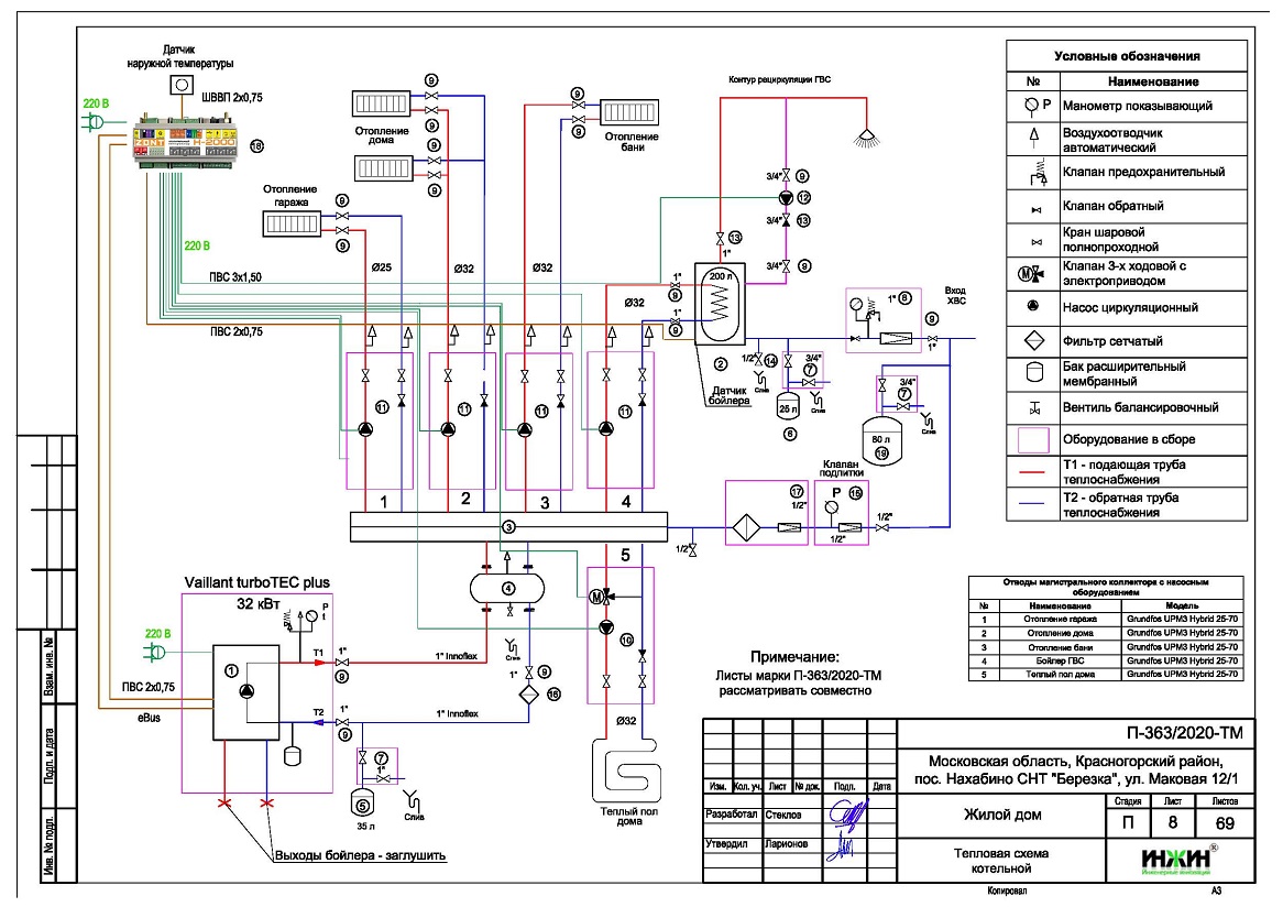 Проект отопления дома 207 м.кв. с гаражом и баней
