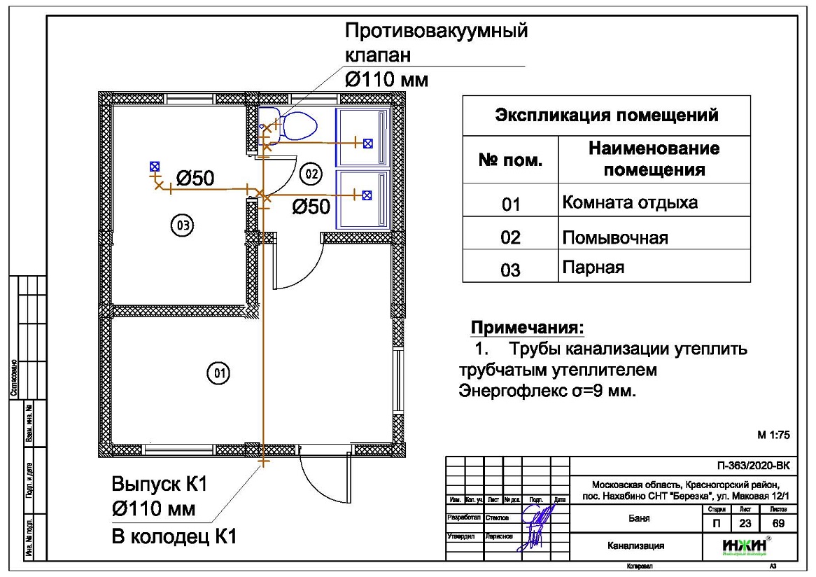 5. Комплекты чертежей внутреннего водопровода и канализации дома, гаража и бани.