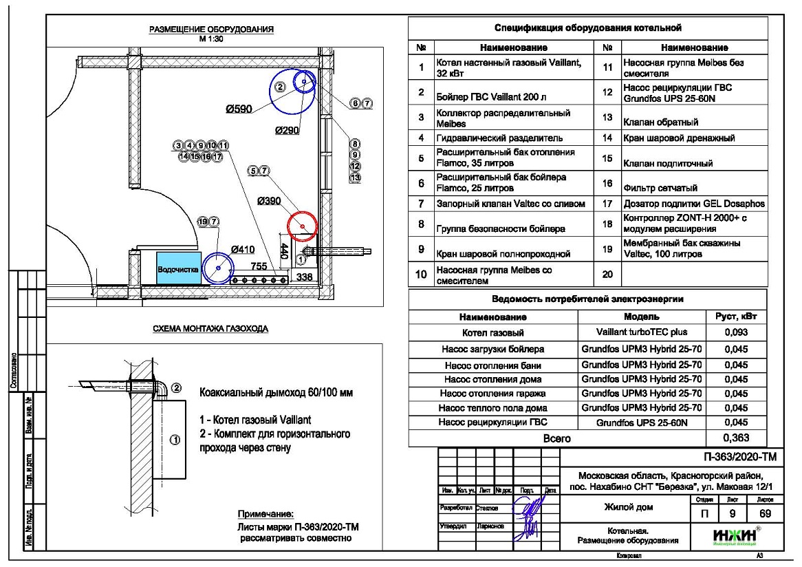 o Предусмотрен настенный газовый котел Vaillant мощностью 32 кВт;