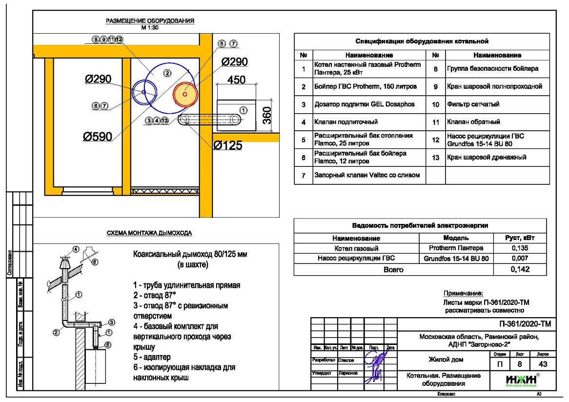 Состав проекта котельной, отопления, канализации и водоснабжения дома в АДНП "Загорново-2":