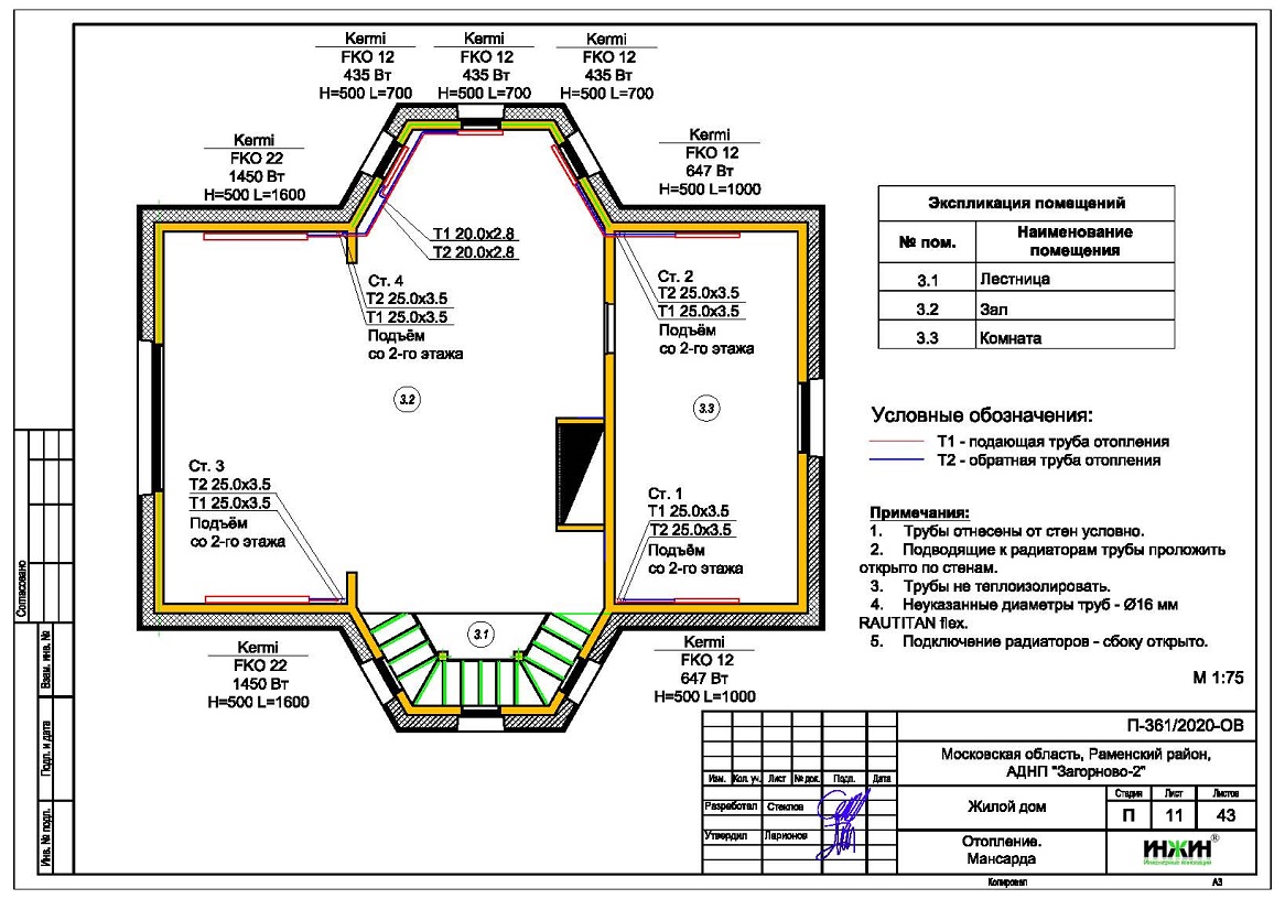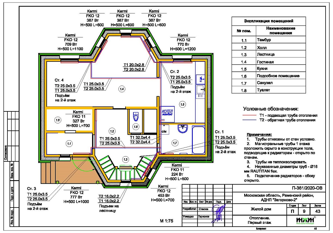 Объем проекта отопления, канализации и водоснабжения дома в АДНП "Загорново-2": 43 листа.