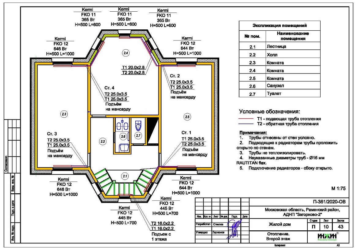 3. Комплект поэтажных чертежей радиаторного отопления дома в АДНП "Загорново-2".