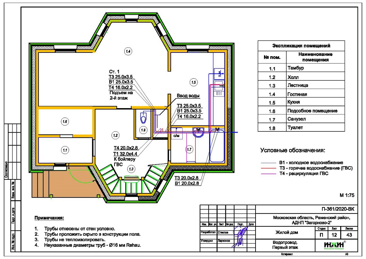 Внутренний водопровод дома в АДНП "Загорново-2" (проект водоснабжения).