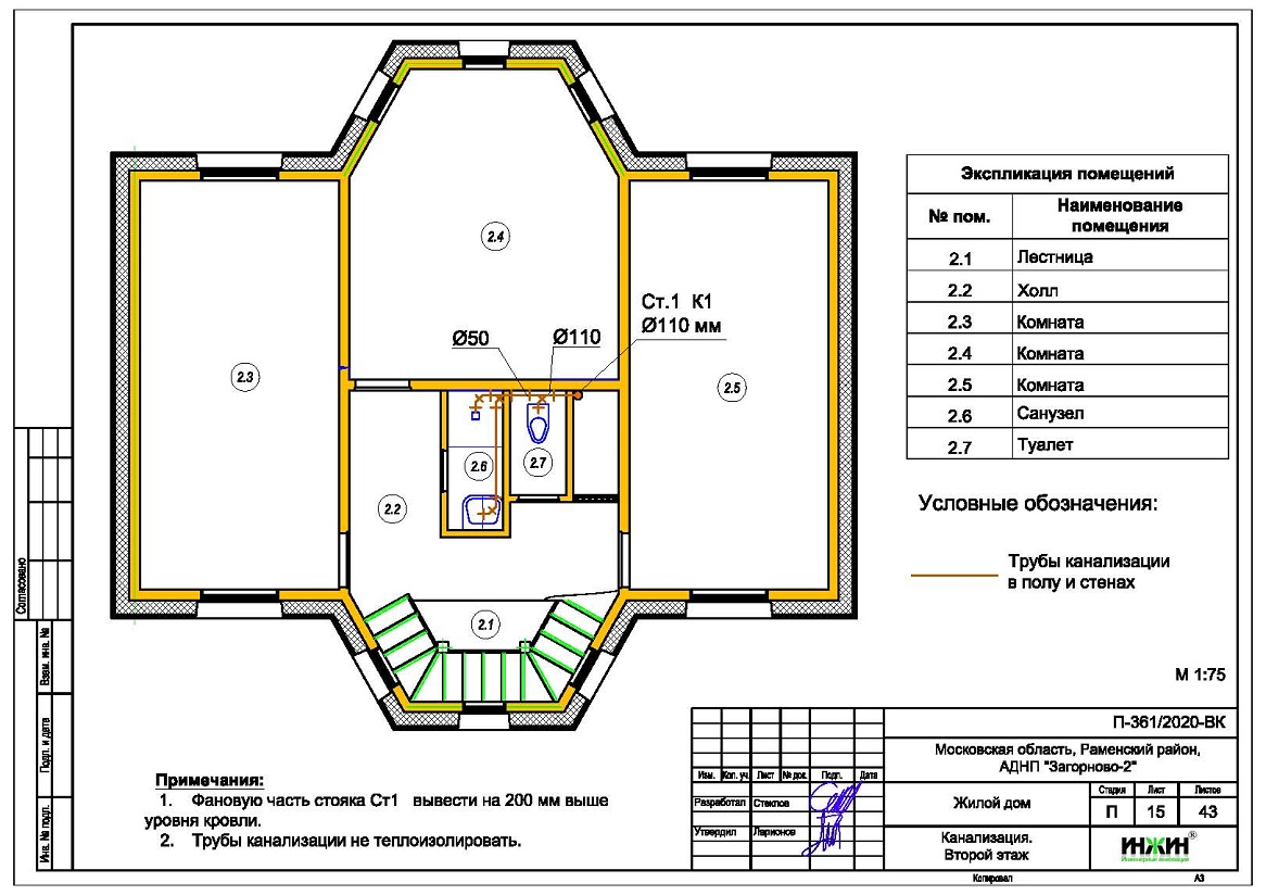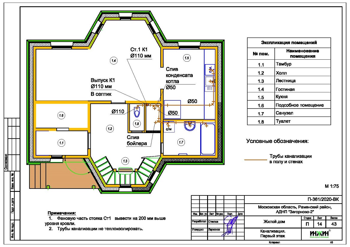 Внутренняя канализация (проект канализации) дома в АДНП "Загорново-2".