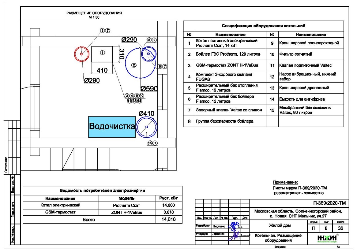 Состав проекта котельной, отопления, канализации и водоснабжения дома в СНТ "Мельник":