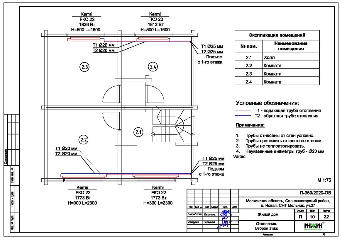 3. Комплект поэтажных чертежей радиаторного отопления дома в СНТ "Мельник".