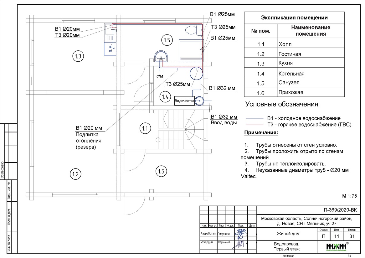 Внутренний водопровод дома в СНТ "Мельник" (проект водоснабжения).
