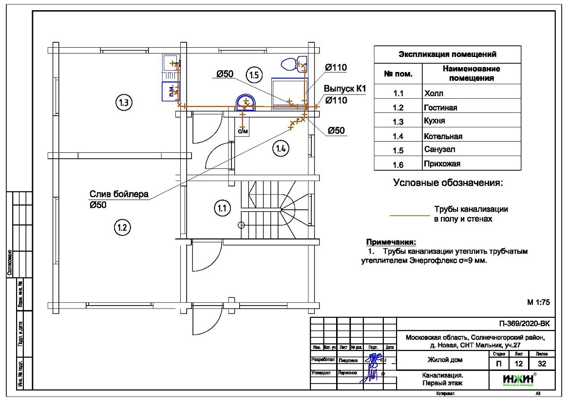 Объем проекта отопления, канализации и водоснабжения дома в СНТ "Мельник": 32 листа.