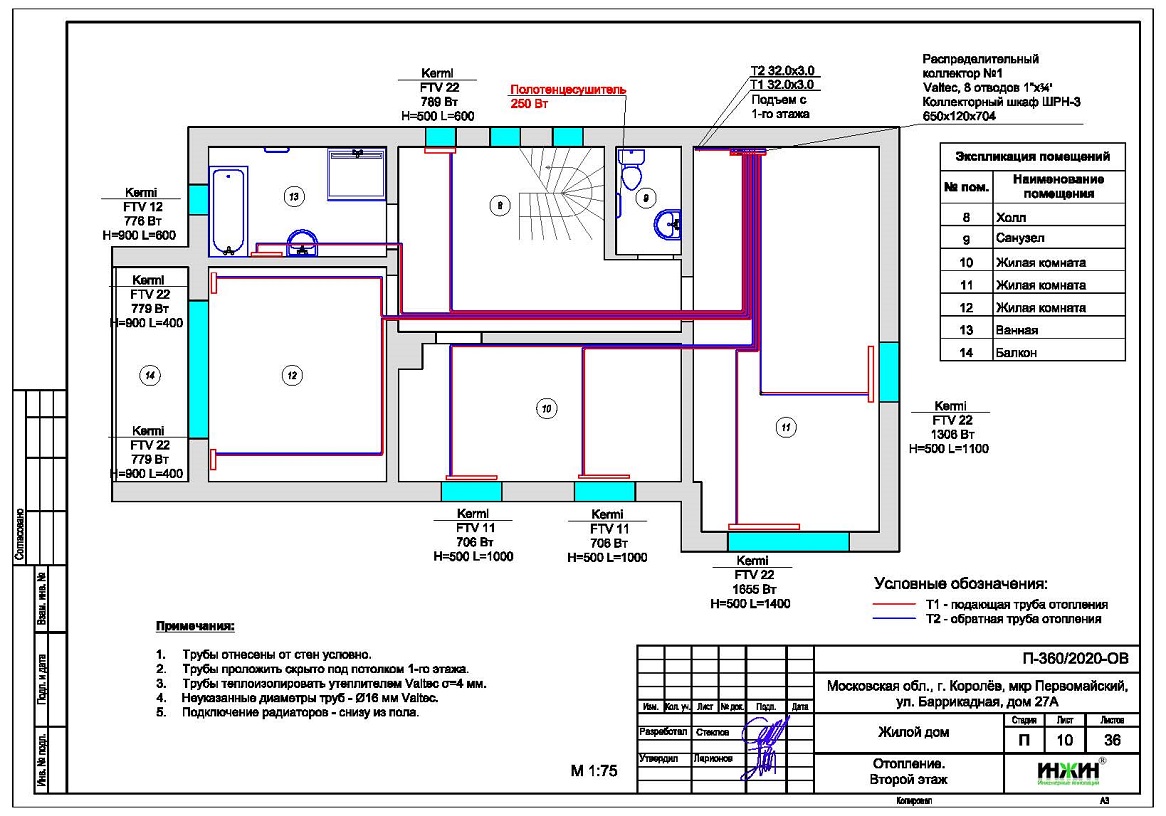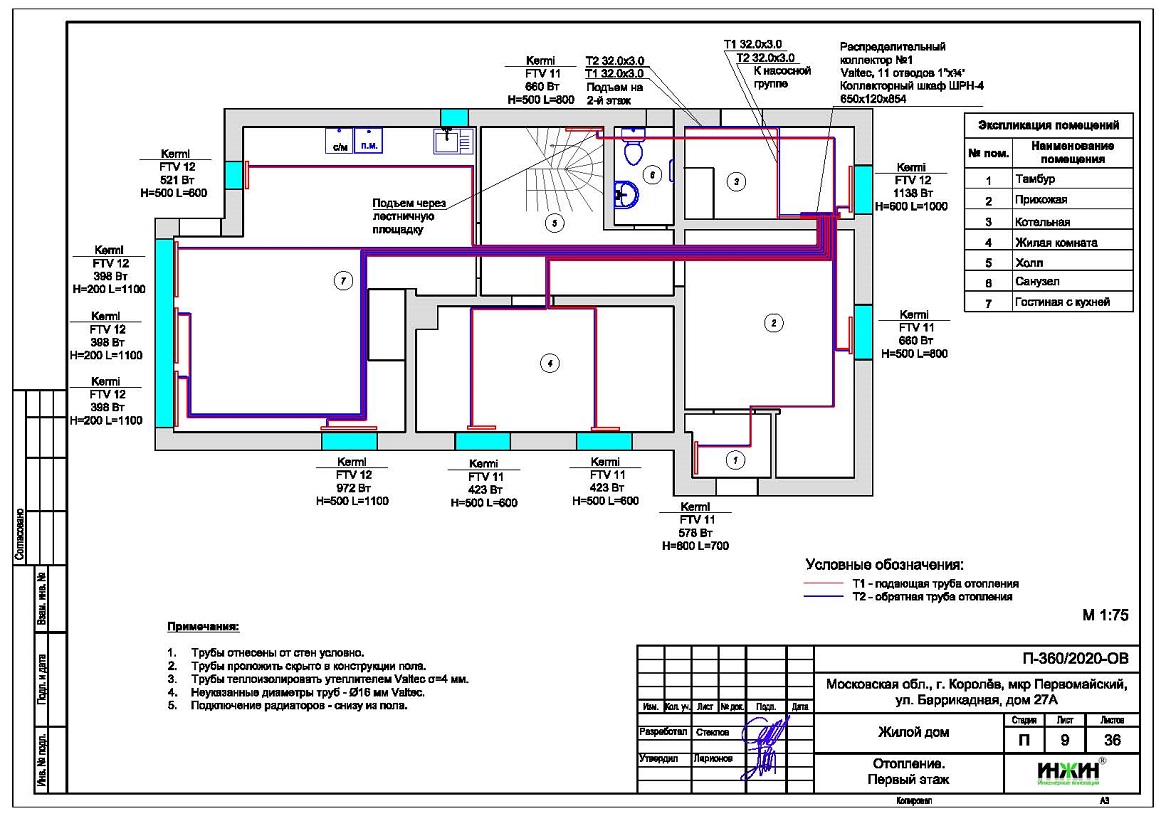 Отопление дома в г.Королёв (мкр Первомайский) (проект отопления дома).