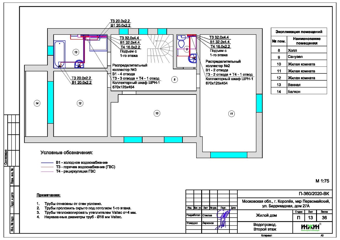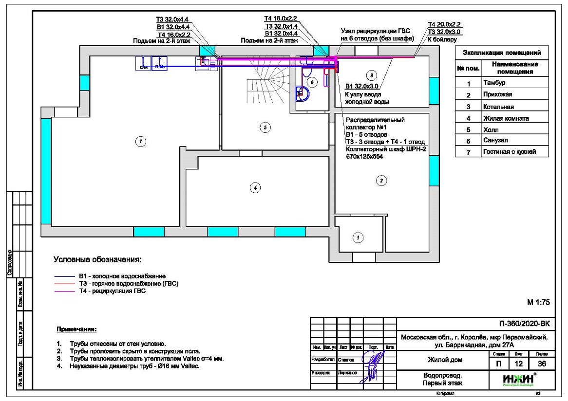 Внутренний водопровод дома в г.Королёв (мкр Первомайский) (проект водоснабжения).