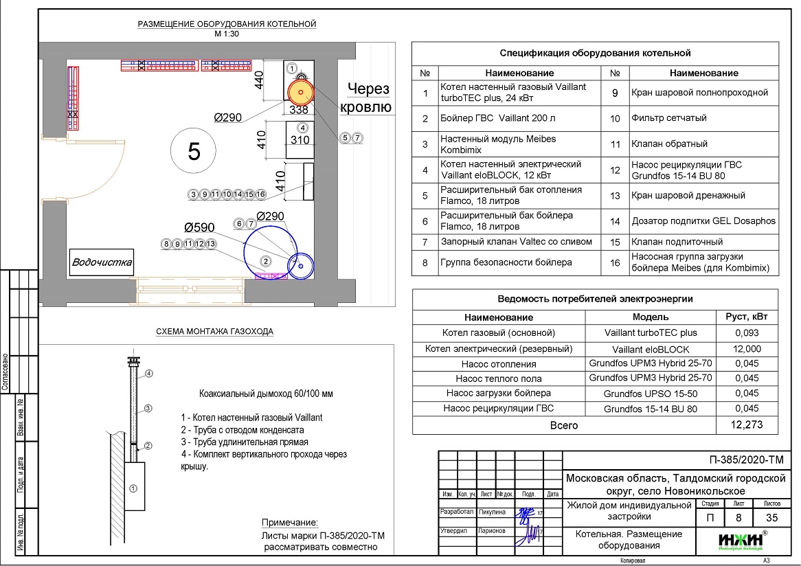 Состав проекта котельной, отопления и водоснабжения дома в Новоникольском: