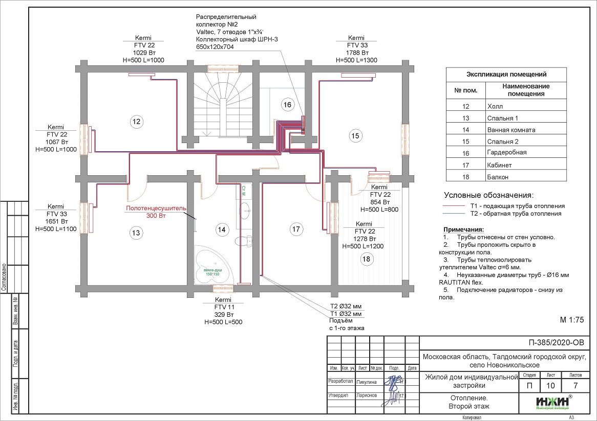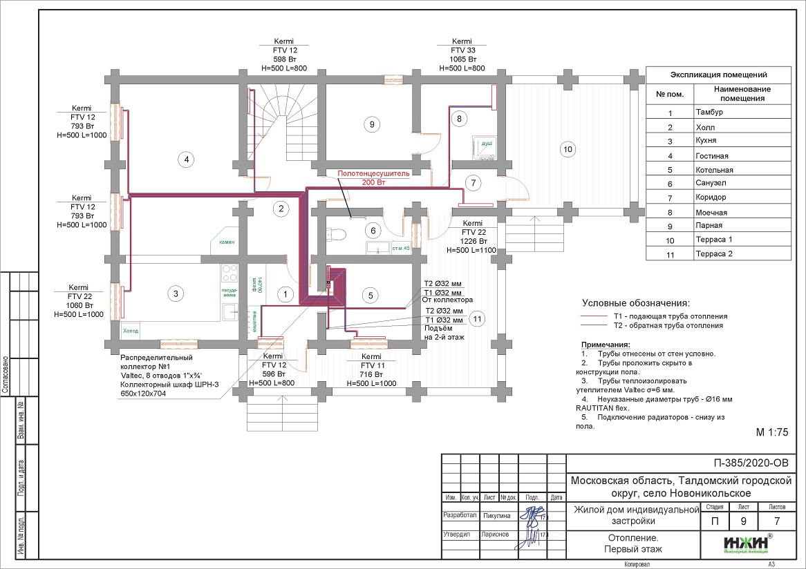 Объем проекта отопления и водоснабжения дома в с.Новоникольское: 35 листов.