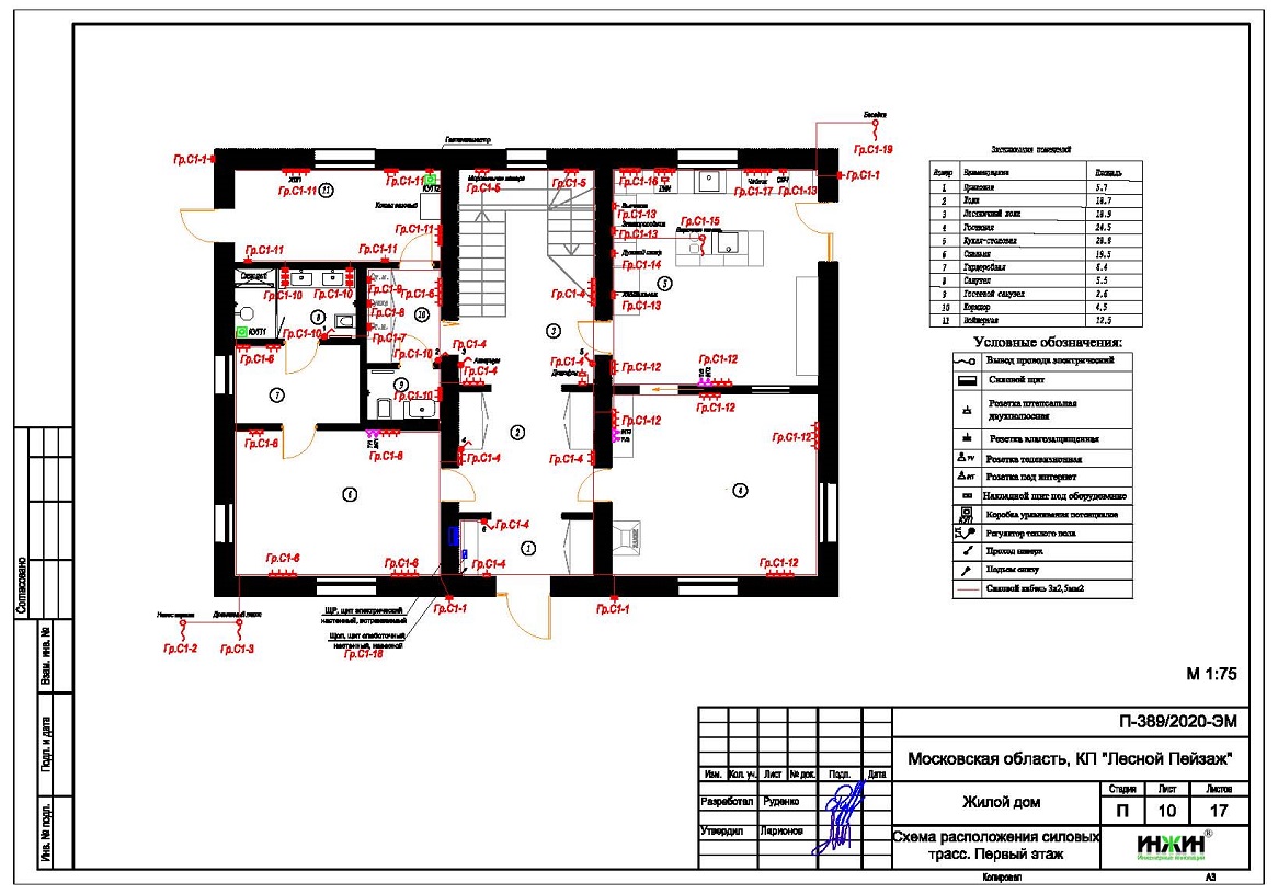 Для этого дома в КП «Лесной Пейзаж» выполнен проект электрики.