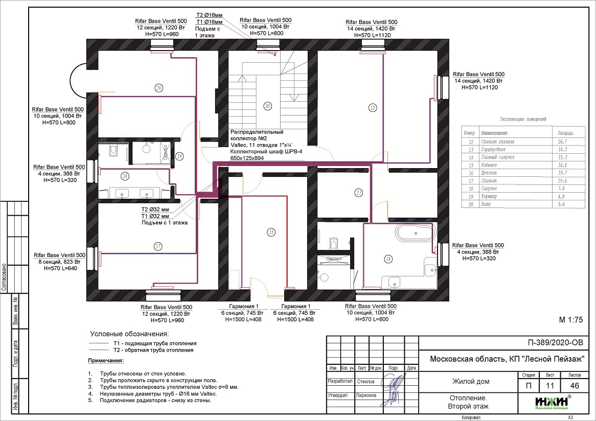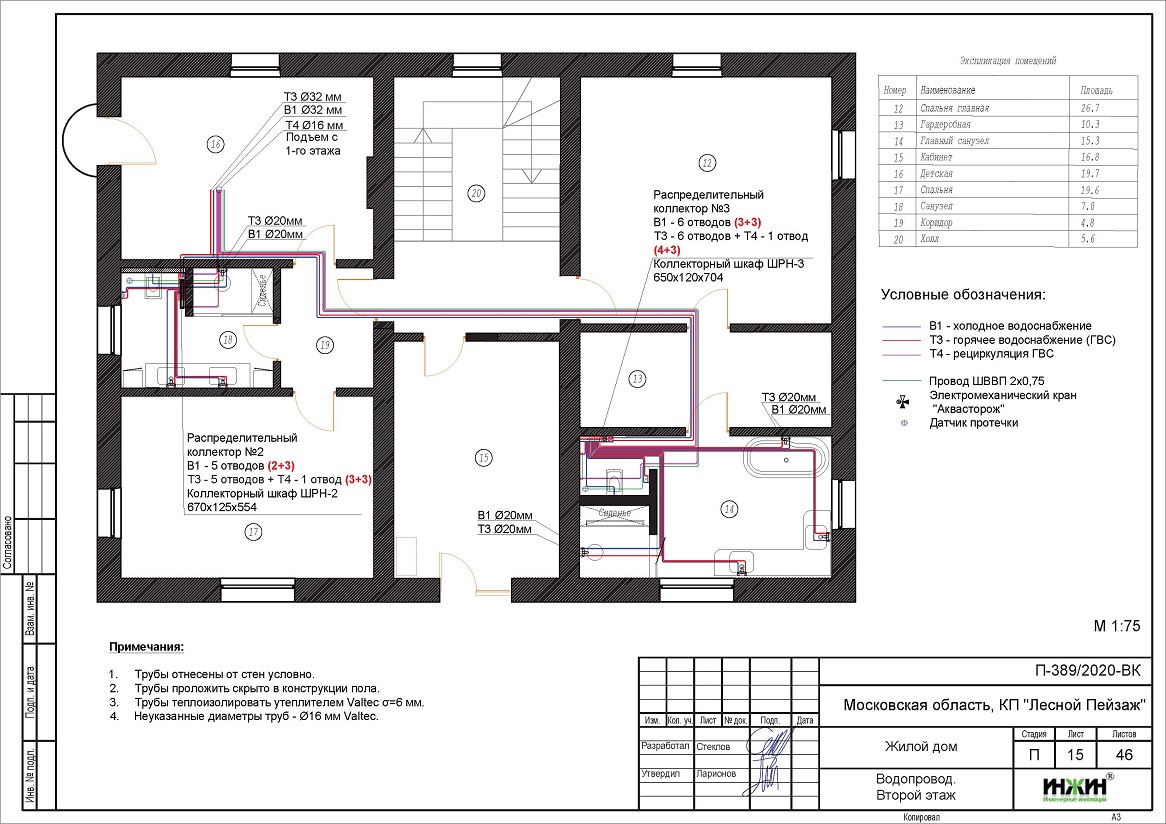 Объем проекта отопления, канализации и водоснабжения дома в КП «Лесной Пейзаж»: 46 листов.