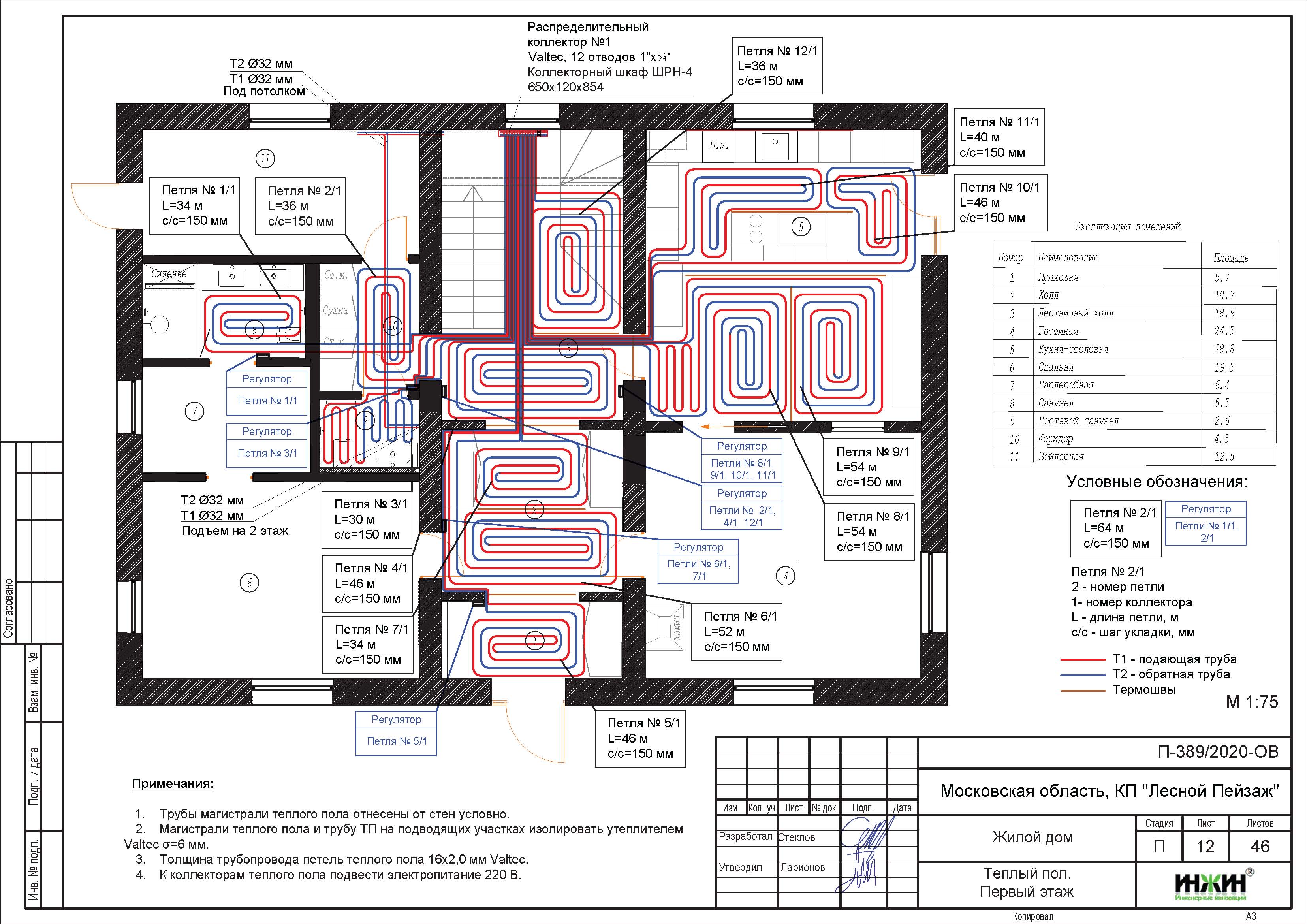 Водяной теплый пол дома в КП «Лесной Пейзаж» (проект теплого пола).