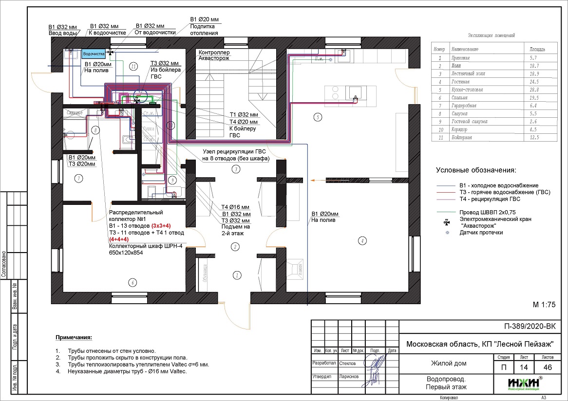 Внутренний водопровод дома в КП «Лесной Пейзаж» (проект водоснабжения).
