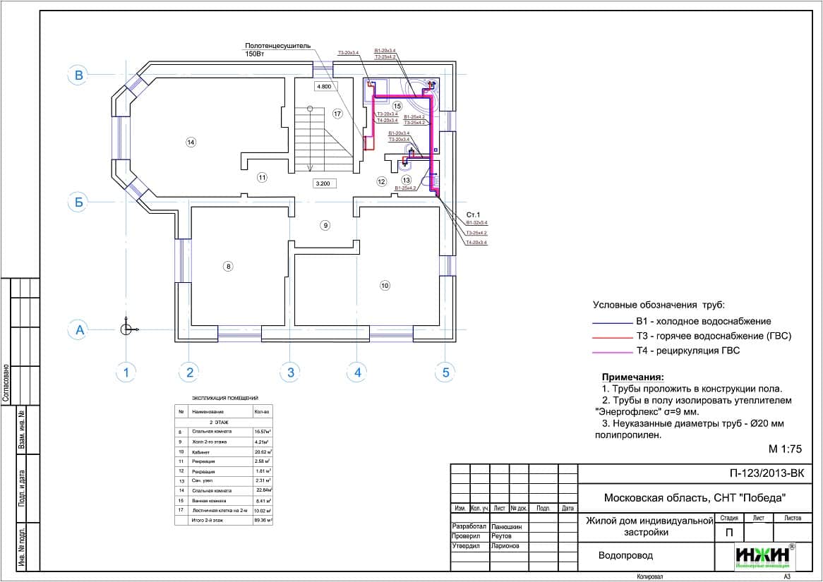 Проект отопления, водоснабжения и канализации выполнен: 26.03.2013