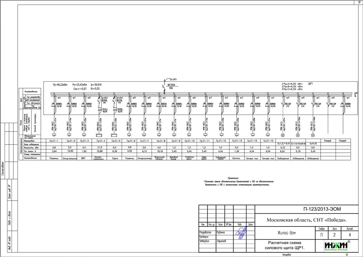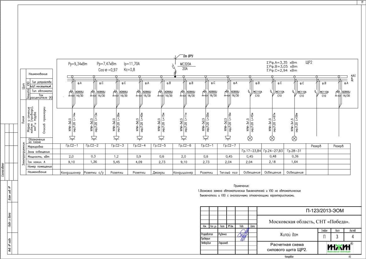 Проект электрики дома площадью 210 м.кв.
