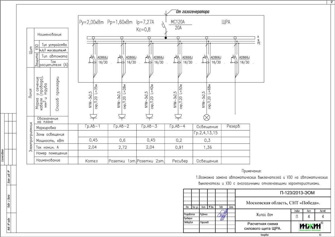 Проект электроснабжения и освещения выполнен: 26.03.2013