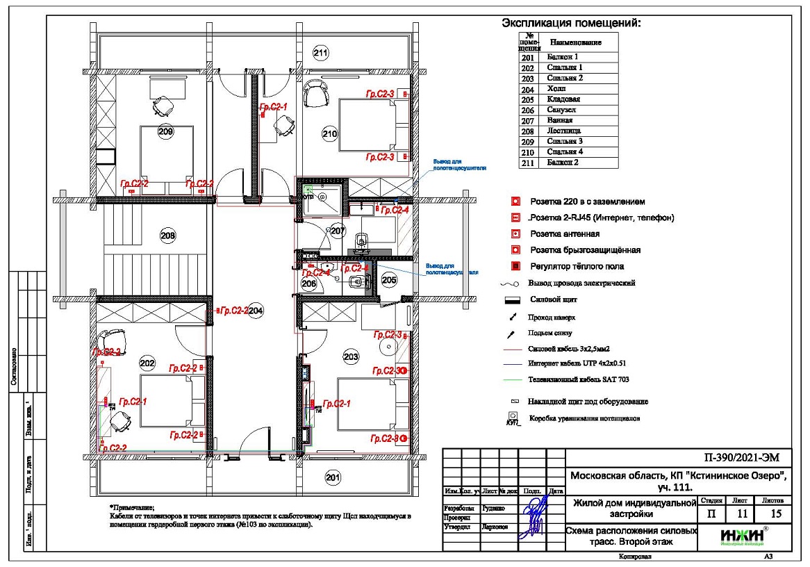 3. Чертежи электропроводки дома в КП "Кстининское Озеро".