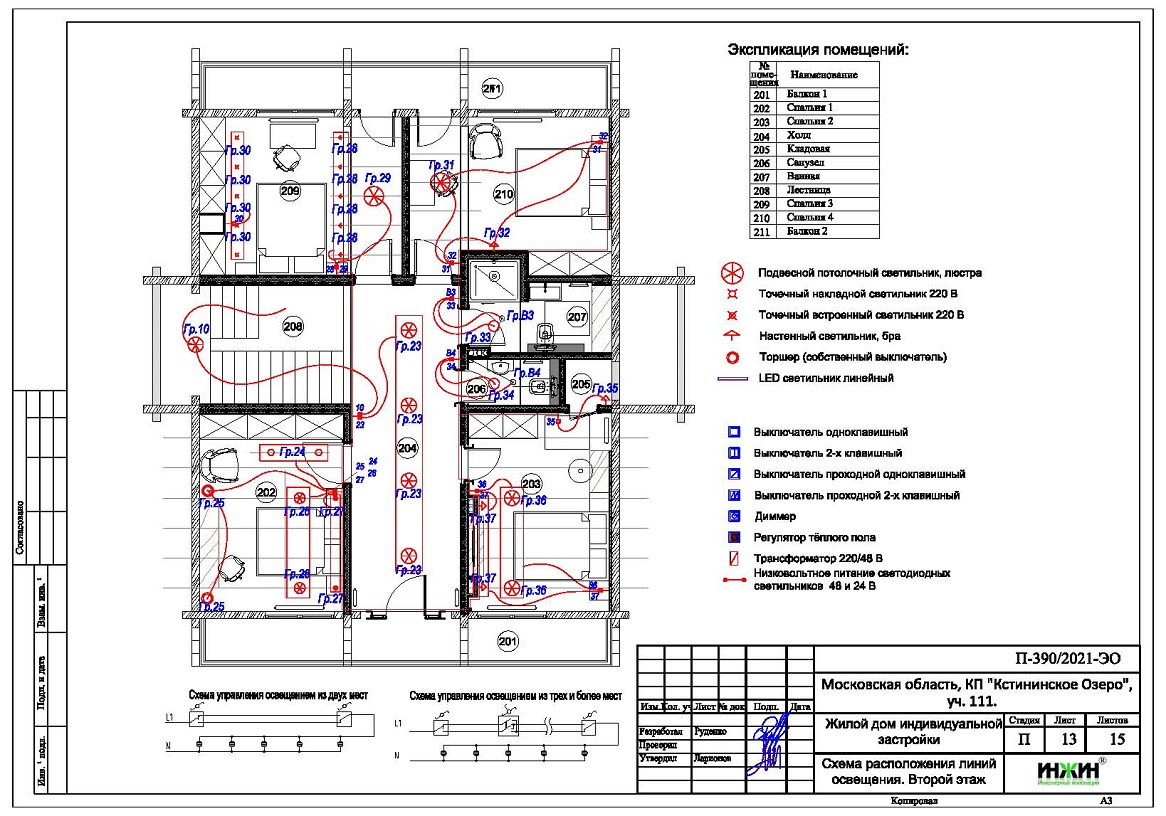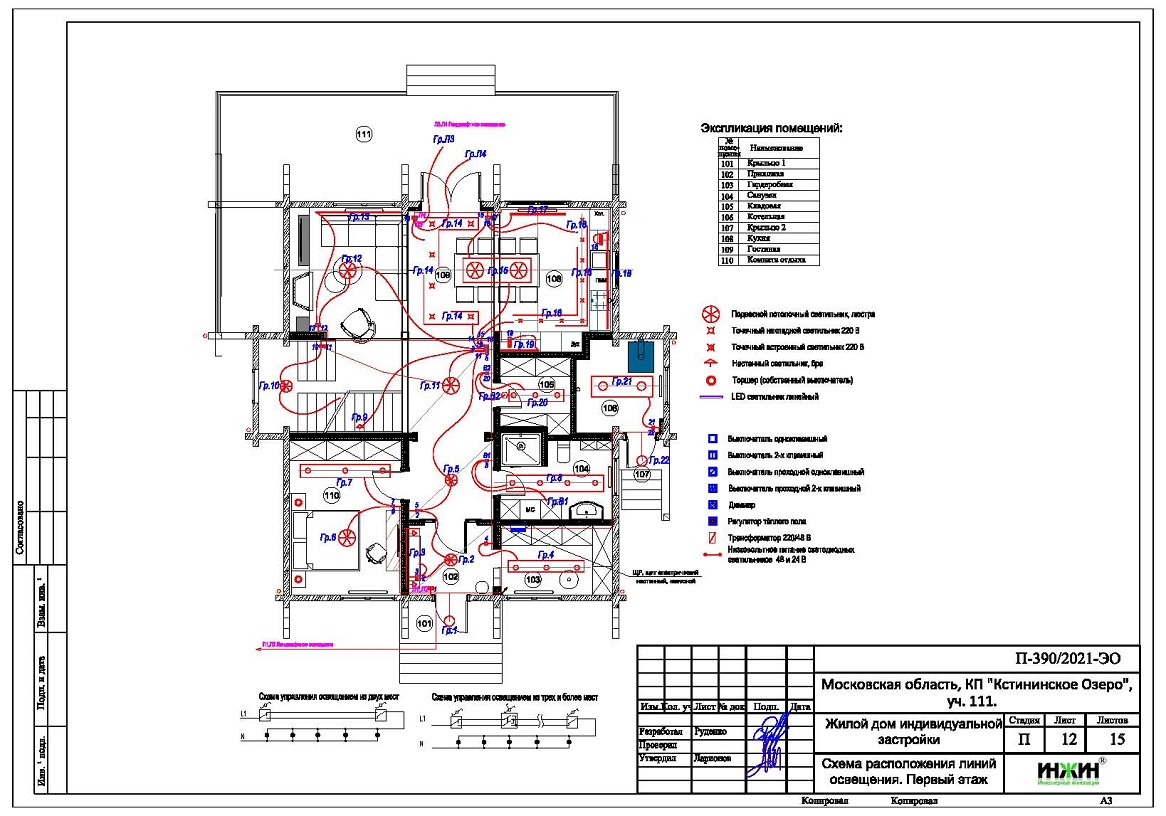 4. Чертежи групповых осветительных сетей дома в КП "Кстининское Озеро".