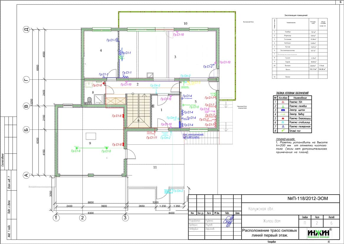 Поэтажные планы силовых электрических сетей (электропроводка).