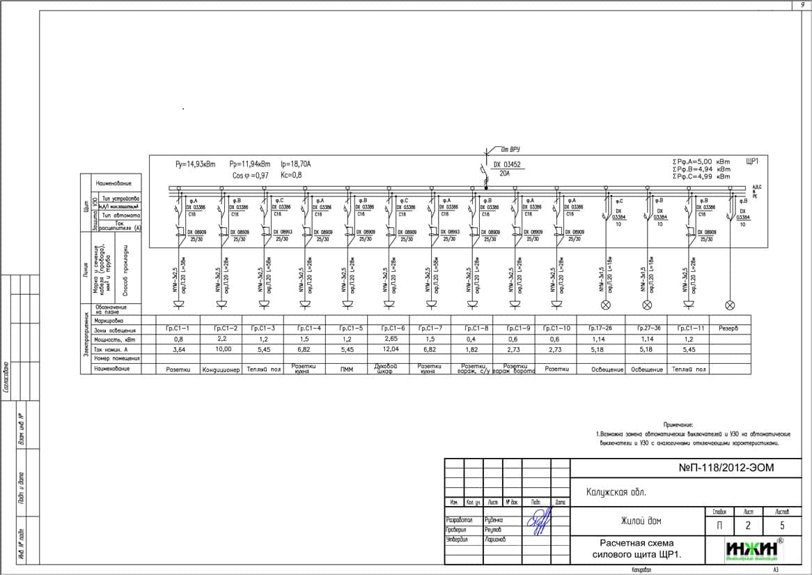 Однолинейные схемы вводного распределительного устройства и поэтажных распределительных щитов.