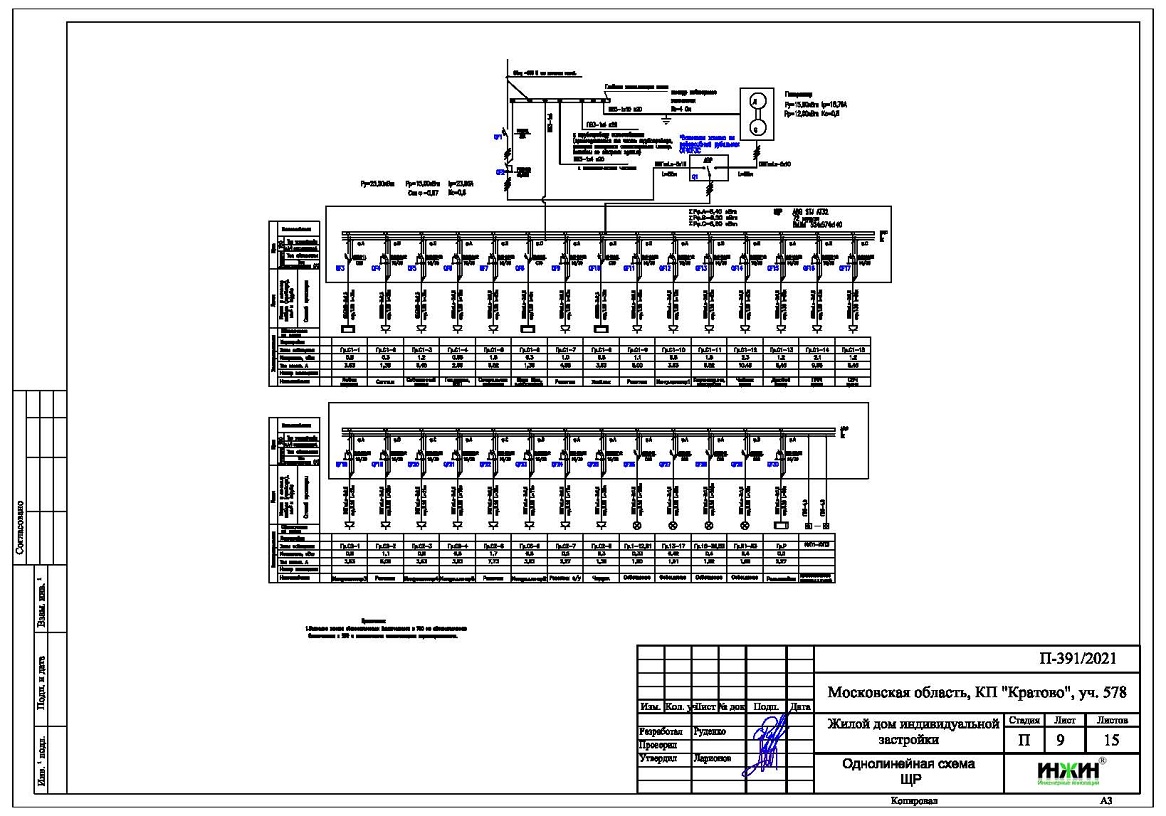 Объем проекта электрики дома 184 м.кв.: 15 листов.