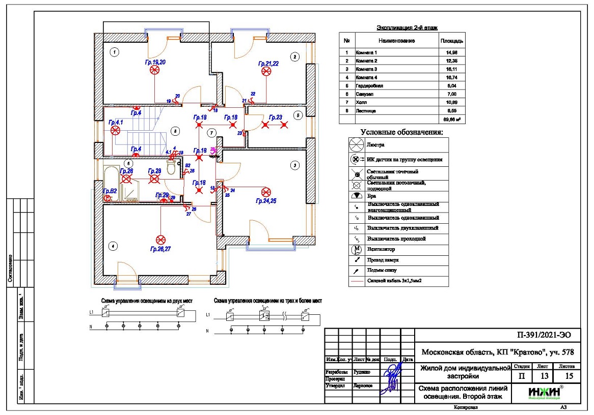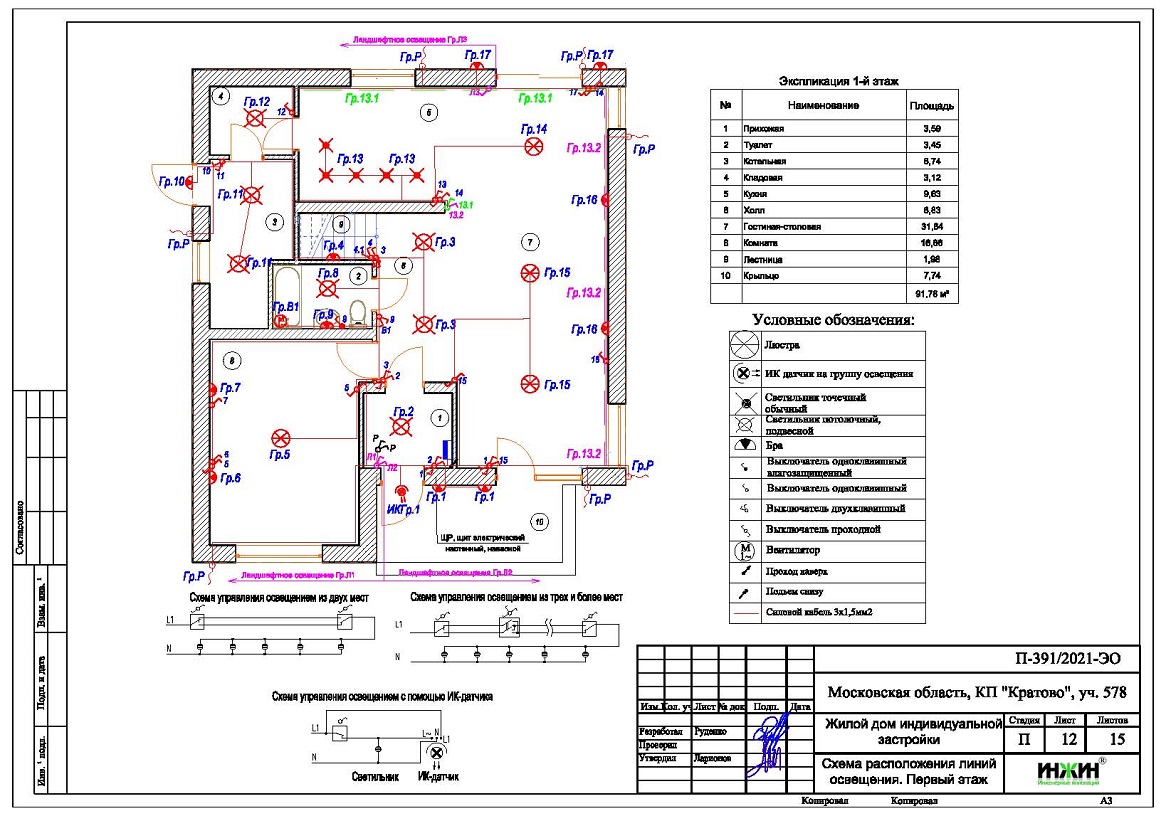 4. Чертежи групповых осветительных сетей дома в КП "Кратово".