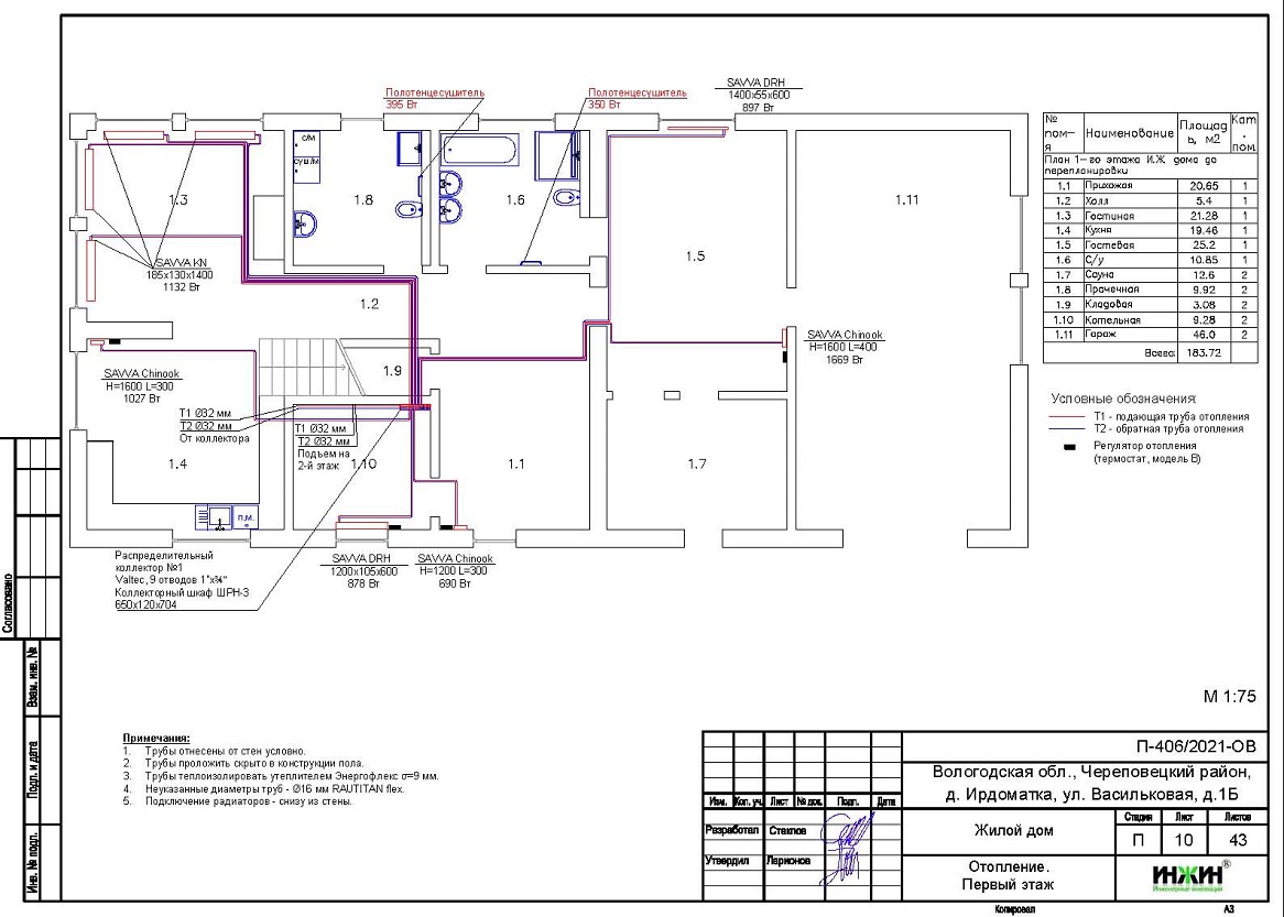 Проект отопления дома 215 м.кв. в Вологодской области