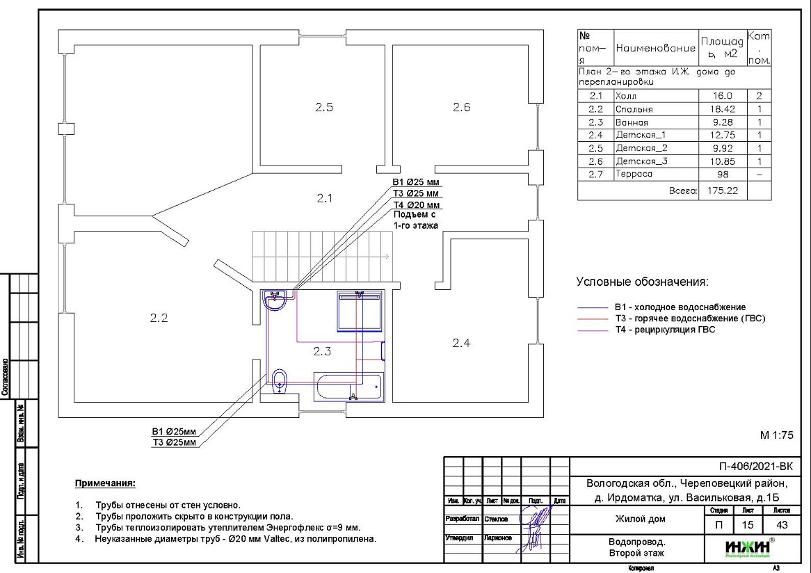 Внутренний водопровод дома в дер. Ирдоматка, Вологодской области (проект водоснабжения).