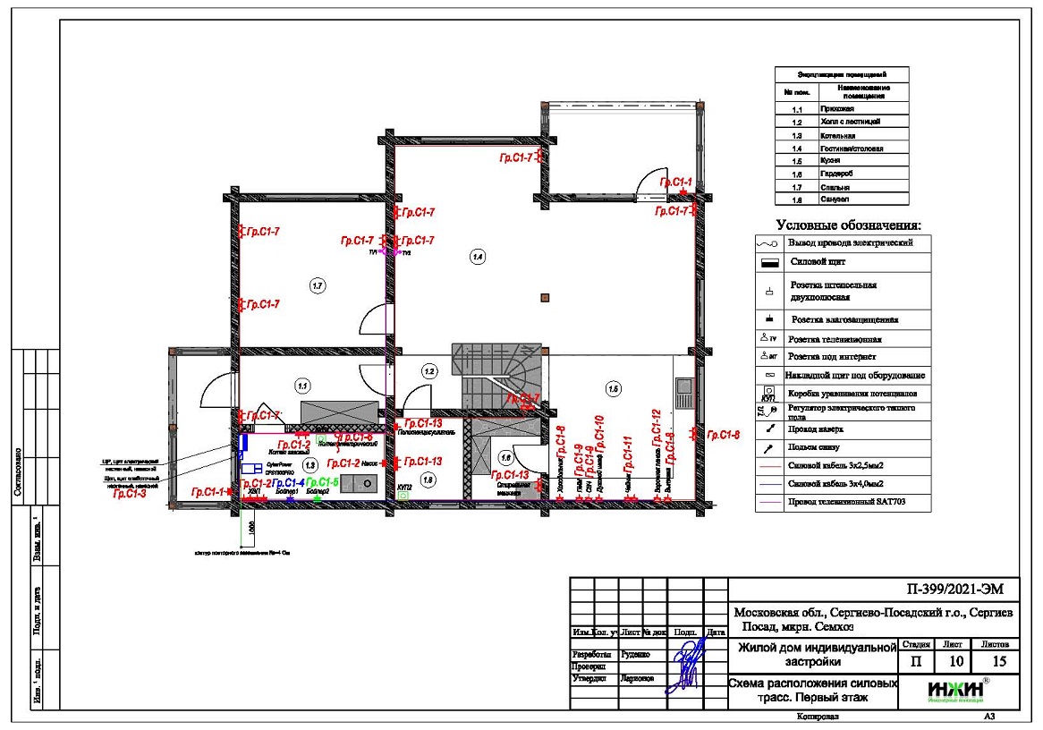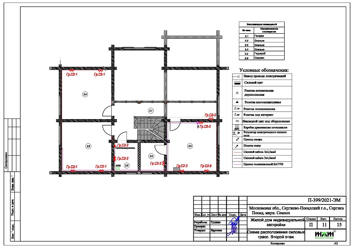 3. Чертежи электропроводки дома в мкр Семхоз (Сергиев Посад).