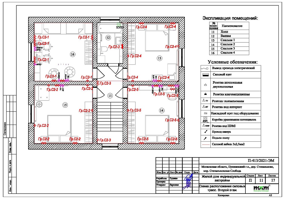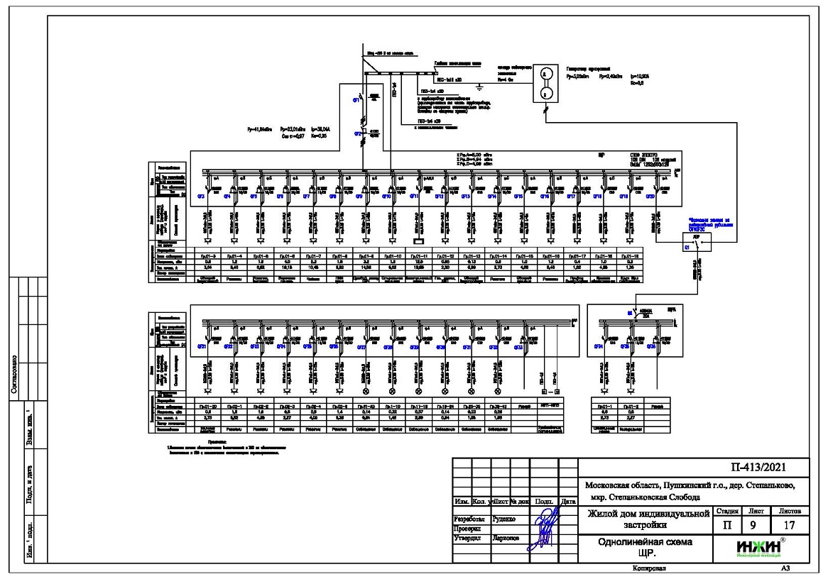 Объем проекта электрики дома 201 м.кв.: 17 листов.