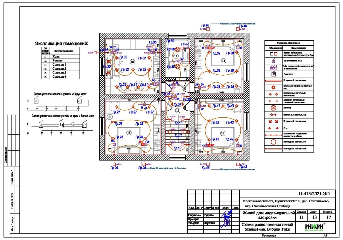 4. Чертежи групповых осветительных сетей дома в Пушкино.