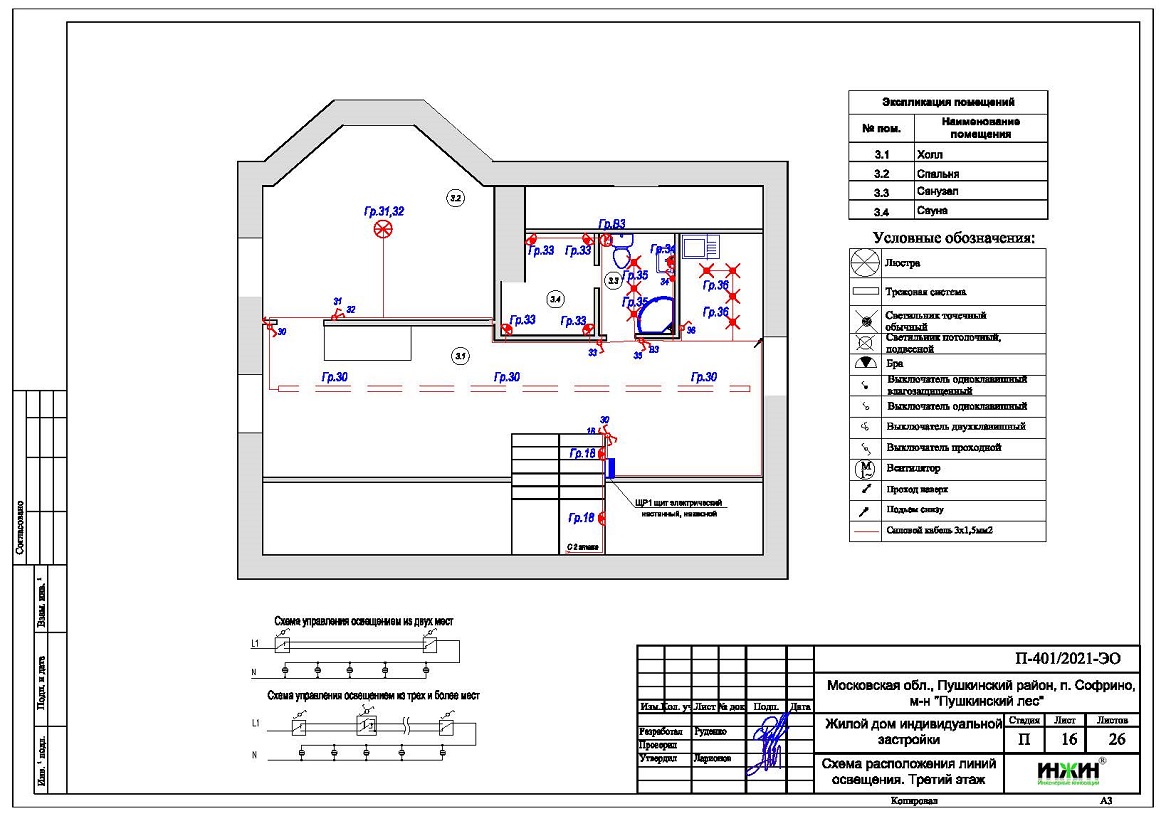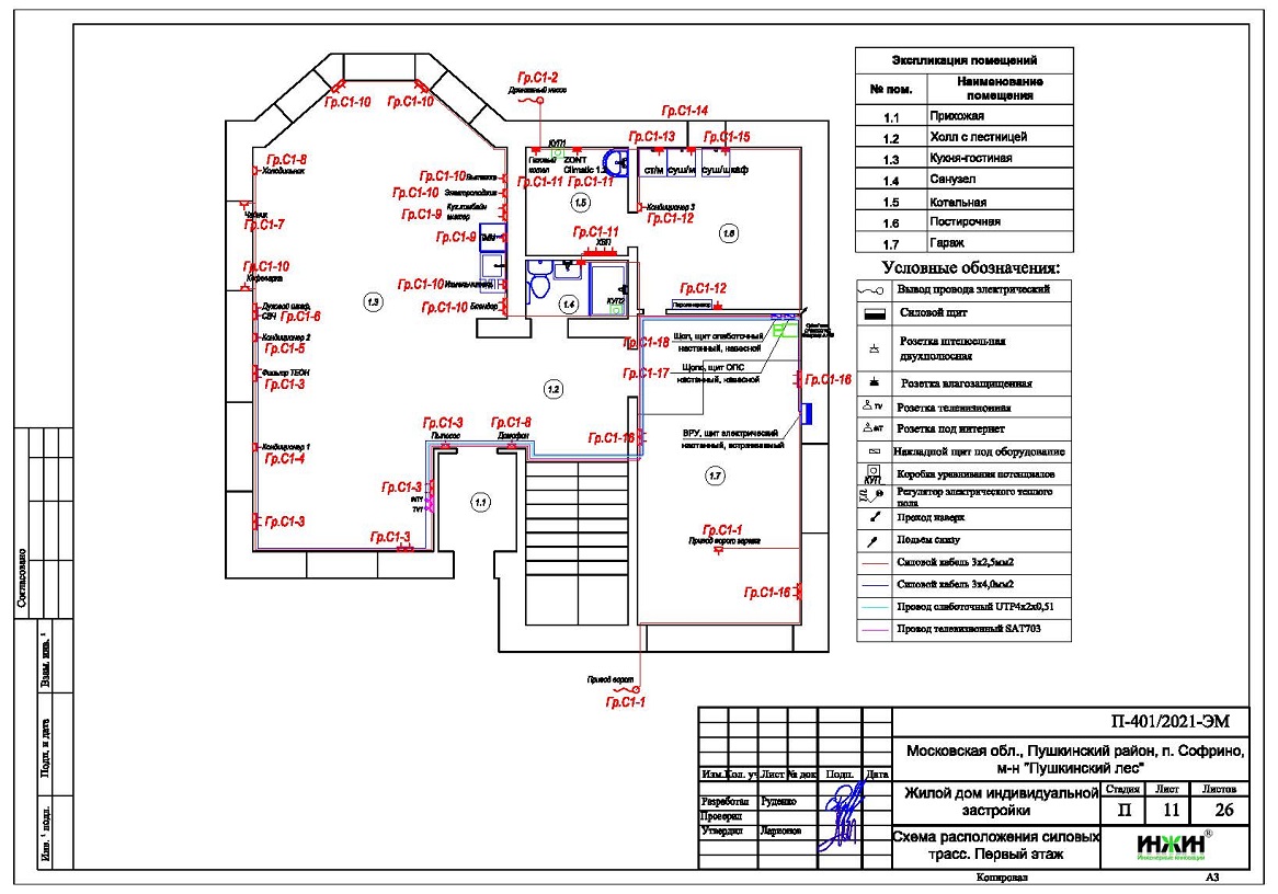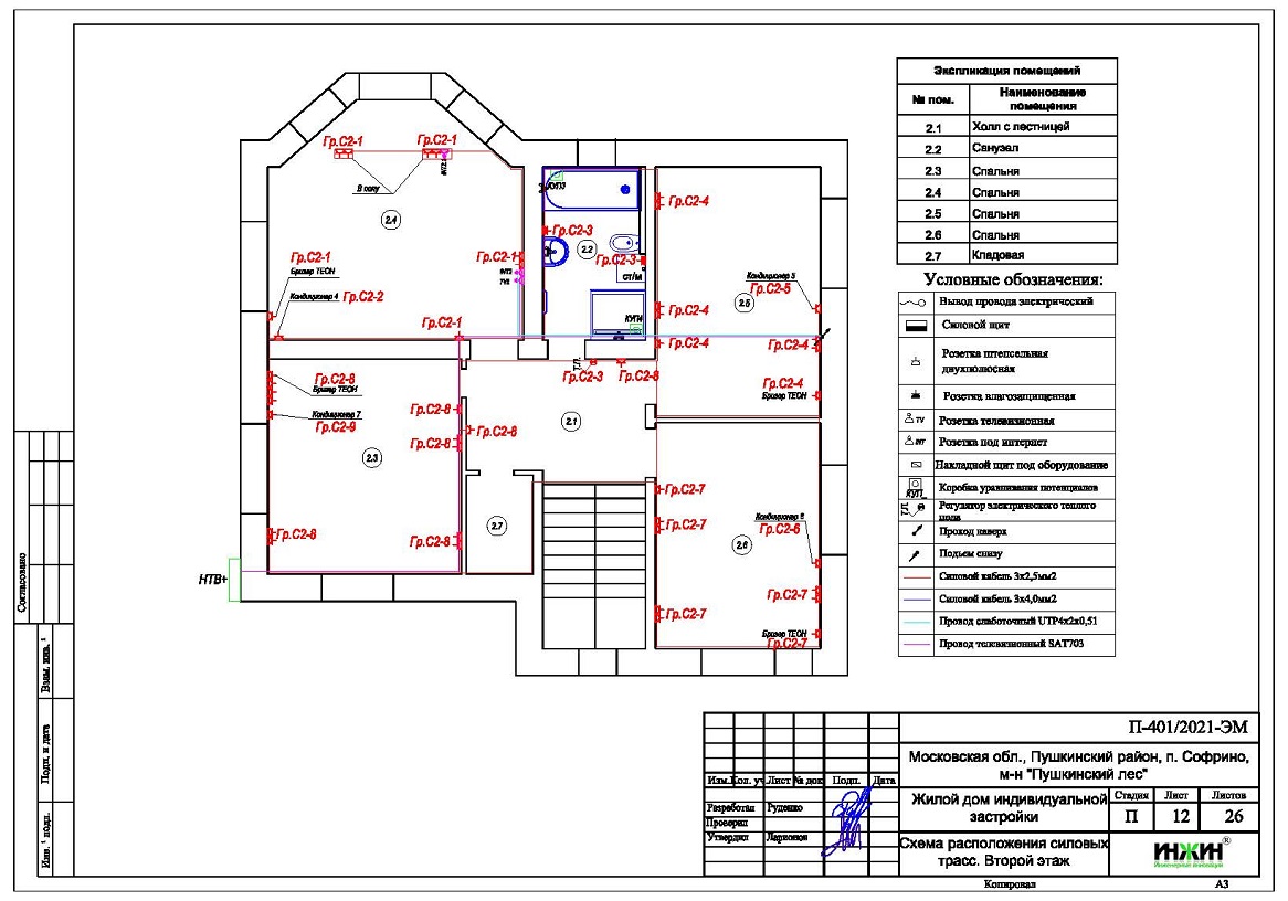 3. Чертежи электропроводки дома в мкр Пушкинский лес.