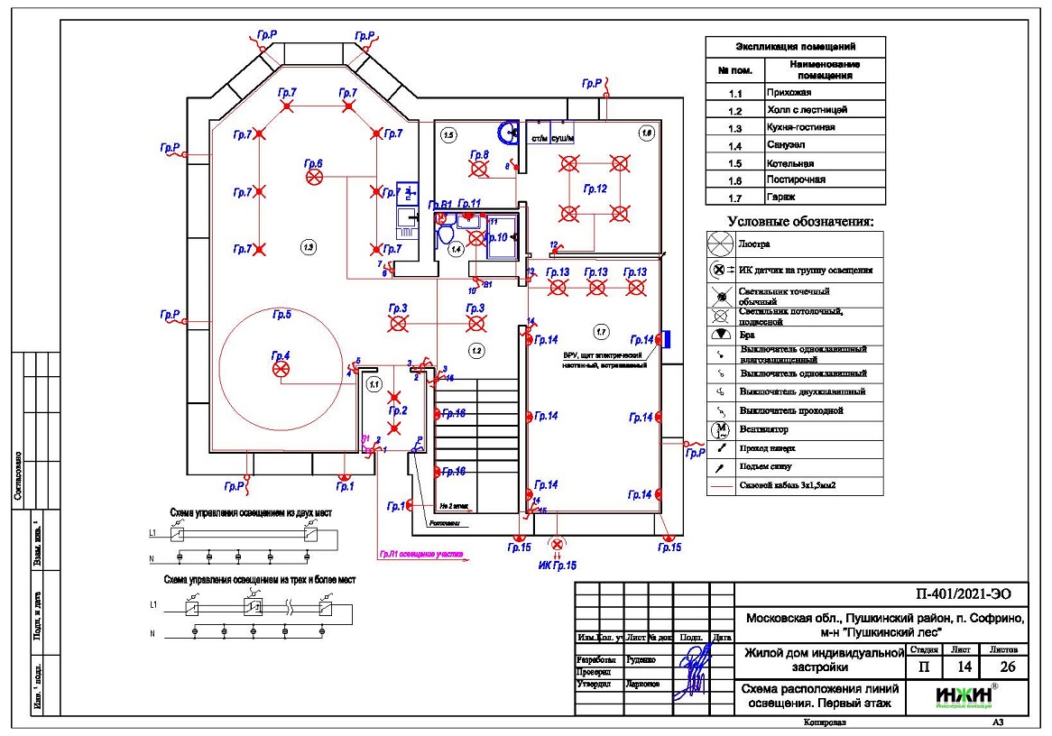 4. Чертежи групповых осветительных сетей дома в мкр Пушкинский лес.