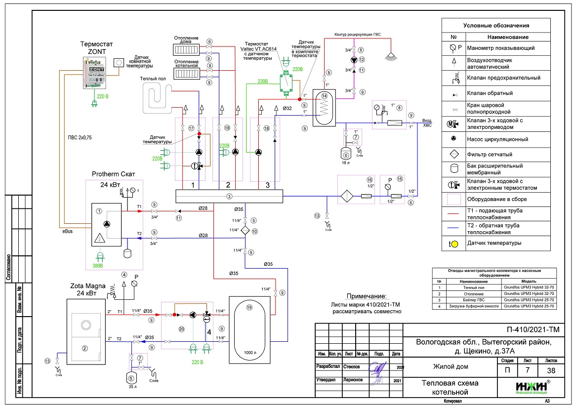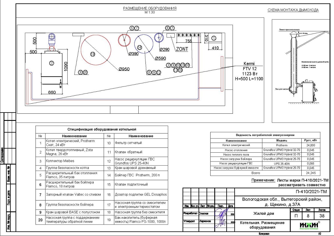 Состав проекта котельной и отопления дома в дер. Щекино Вологодской области: