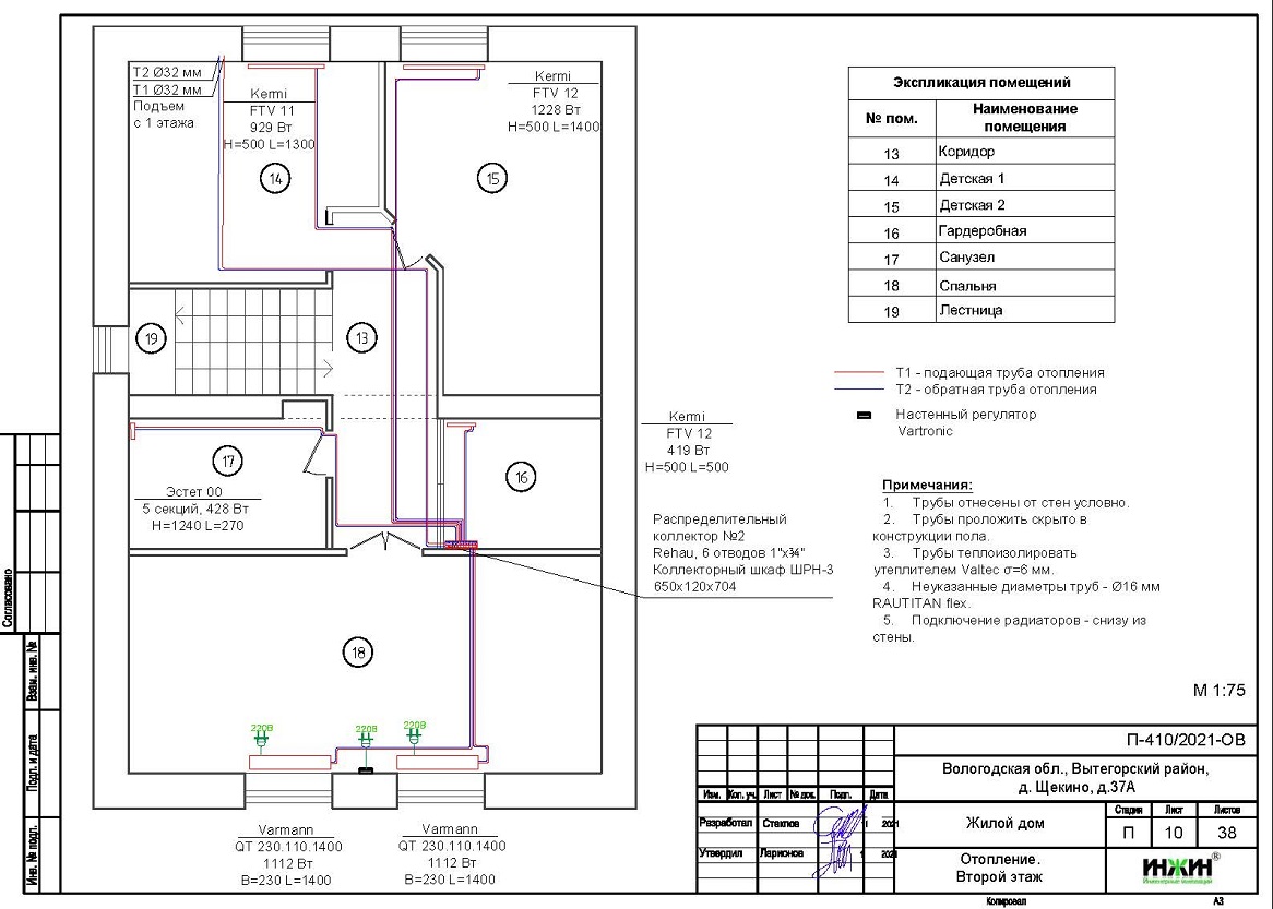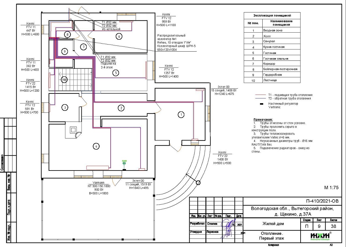 Отопление дома в дер. Щекино Вологодской области (проект отопления дома).