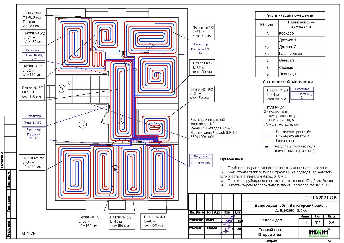 Водяной теплый пол дома в дер. Щекино Вологодской области (проект теплого пола).